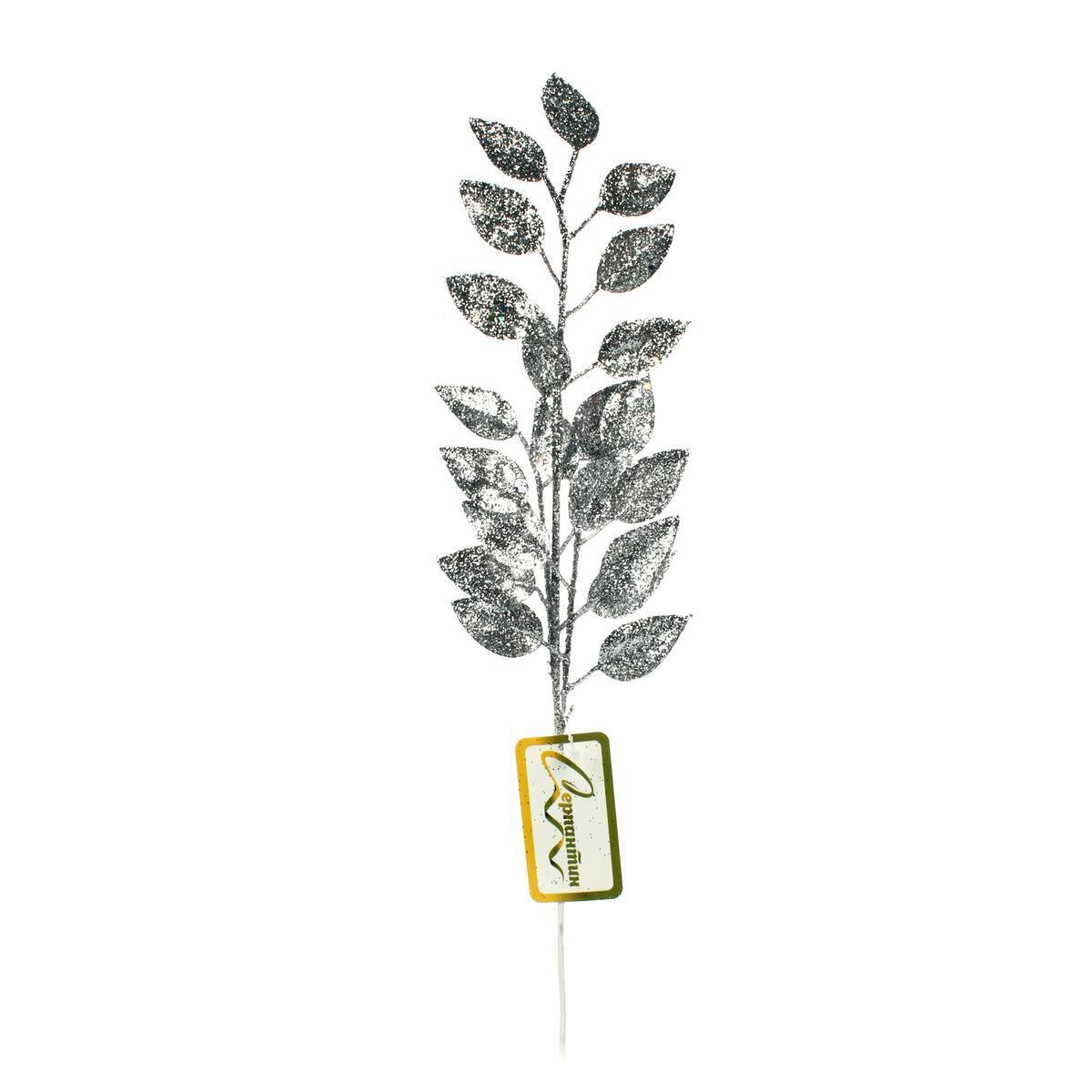Ветка декоративная «Волшебные листья» 50 см, серебристая с блестками, для интерьера