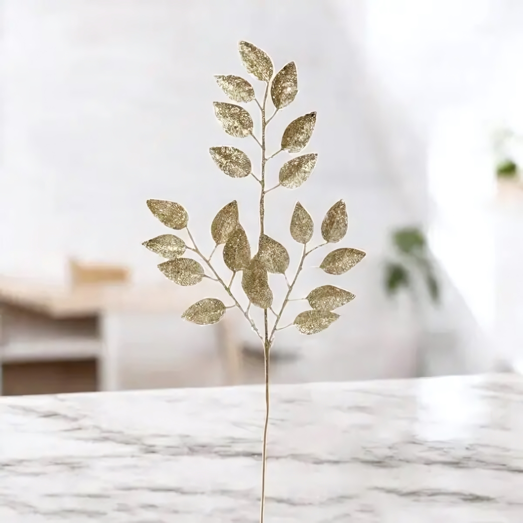 Создайте атмосферу волшебства и уюта с помощью декоративной ветки «Волшебные листья». Этот элемент интерьера станет идеальным акцентом для вашего дома, добавляя нотки роскоши и стиля. Золотой цвет и блестящая отделка делают ветку привлекательной и эффектной, что позволит вам легко украсить любое пространство.