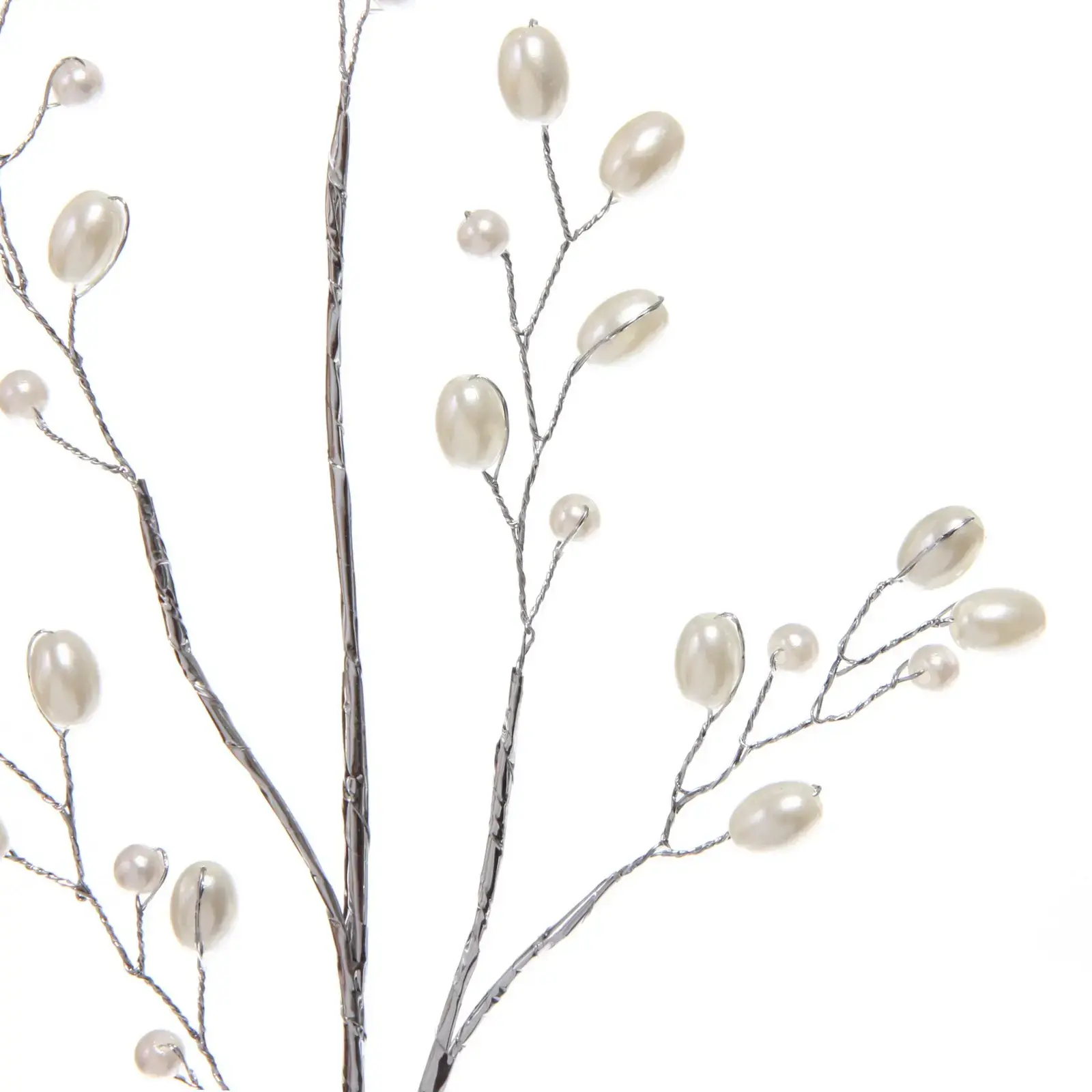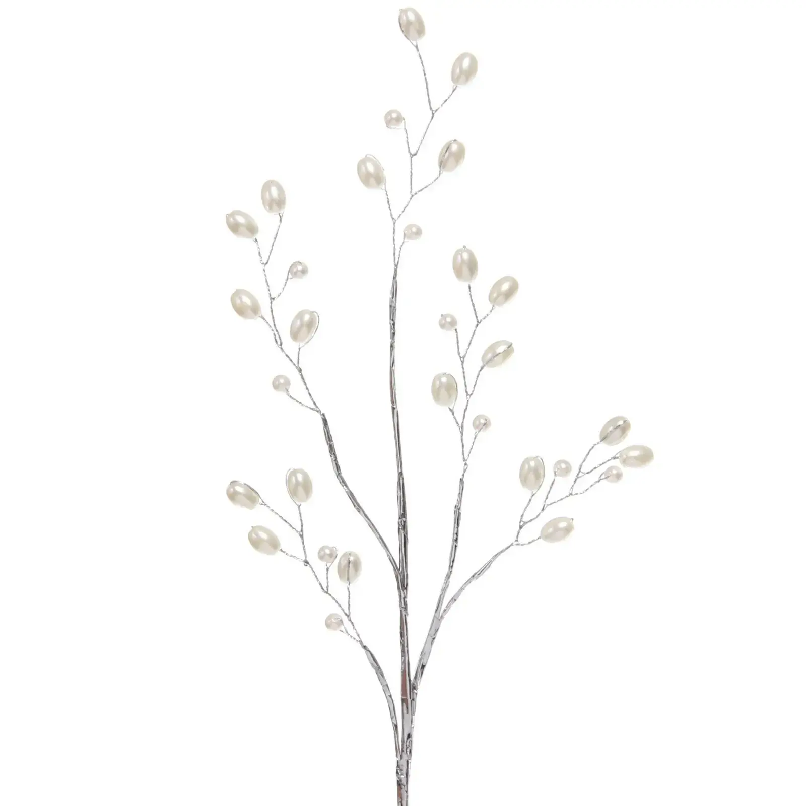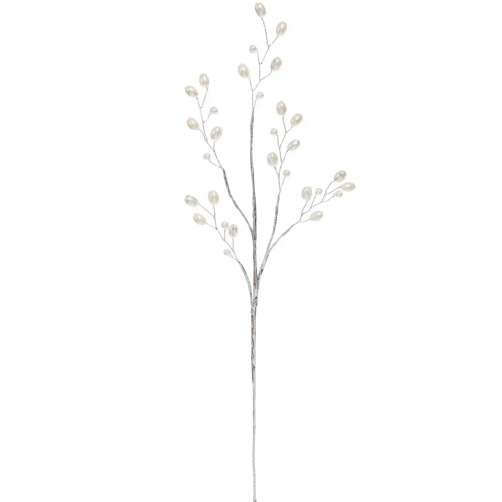 Элегантная декоративная ветка длиной 35 см станет идеальным акцентом в вашем доме. Благодаря стильному сочетанию серебристых стеблей и жемчужных элементов, она создает атмосферу праздника и уюта.