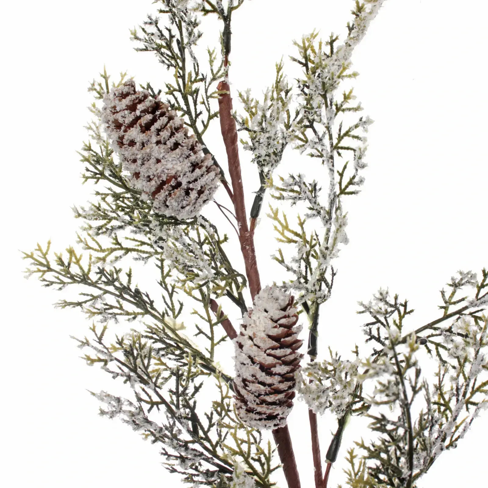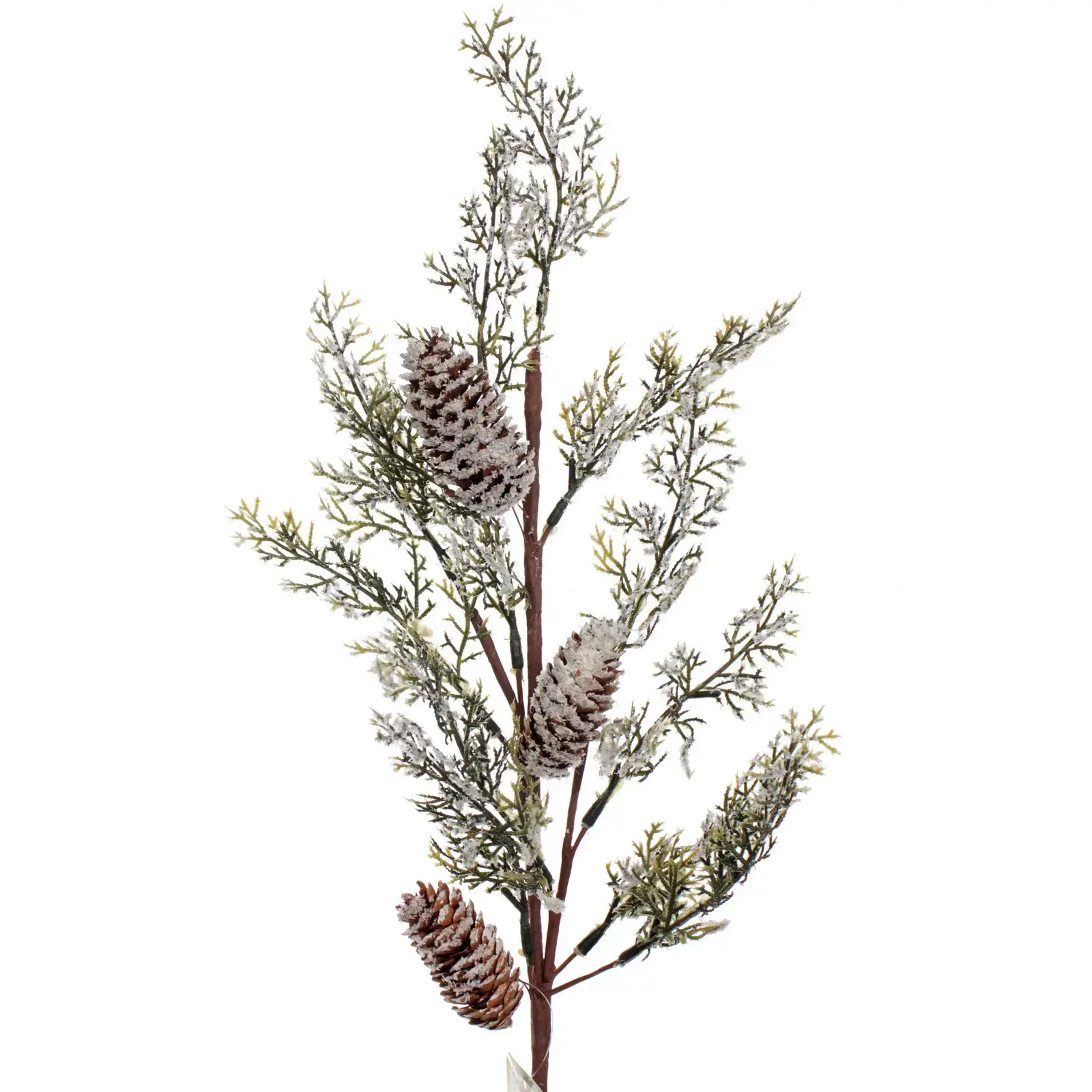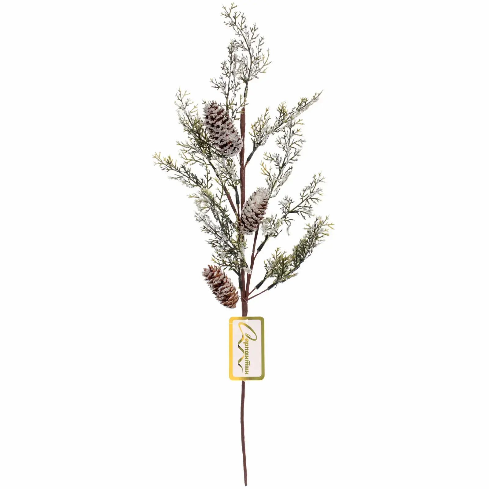 Эта декоративная ветка станет идеальным элементом для вашего интерьера, добавляя уют и атмосферу праздника. С длиной 65 см, она прекрасно впишется в любое пространство, будь то гостиная, спальня или офис. Ветка выполнена из качественного пластика, что обеспечивает её долговечность и легкость в уходе. Она украшена натурально выглядящими шишками, окрашенными в коричневый цвет и покрытыми белыми вкраплениями, имитирующими снег.