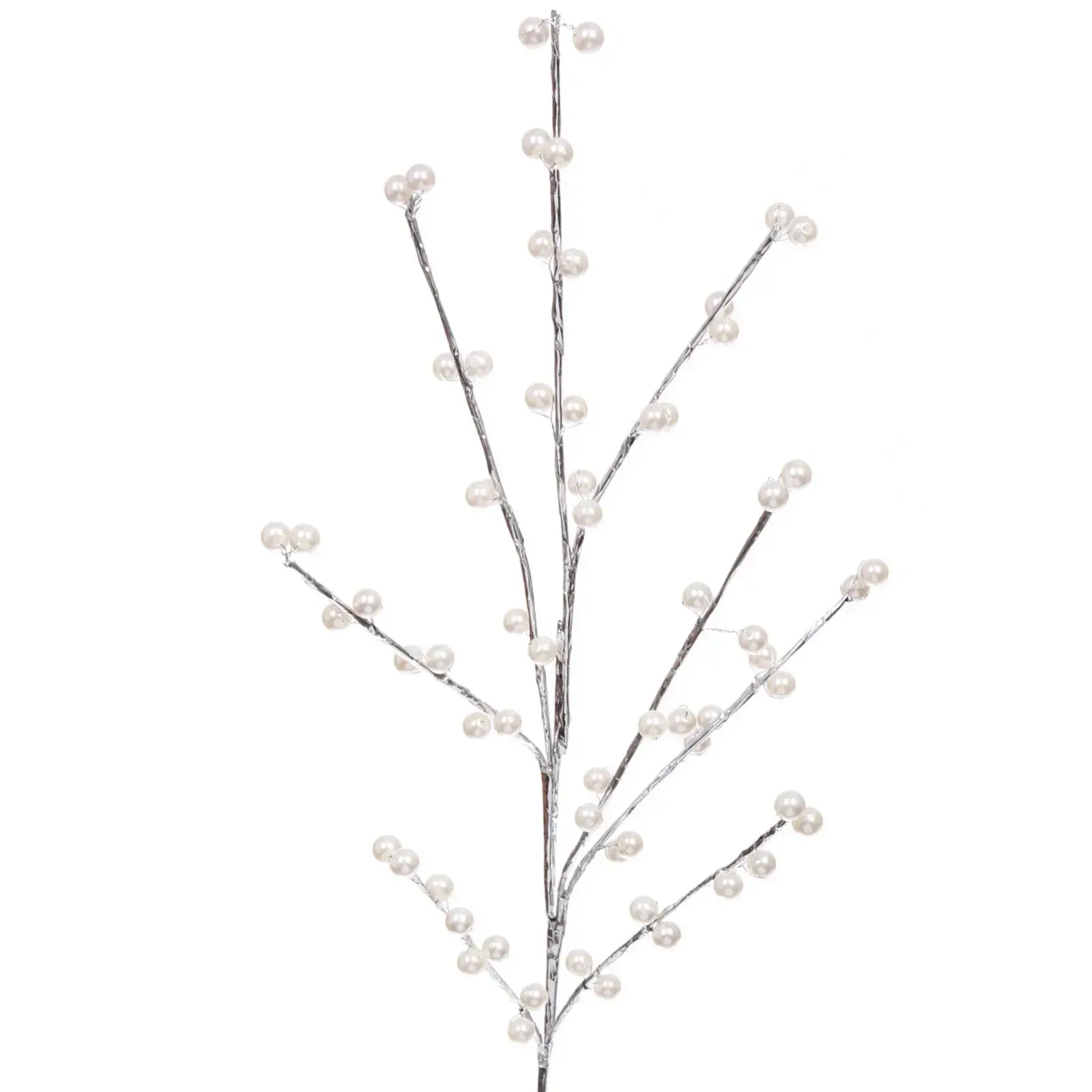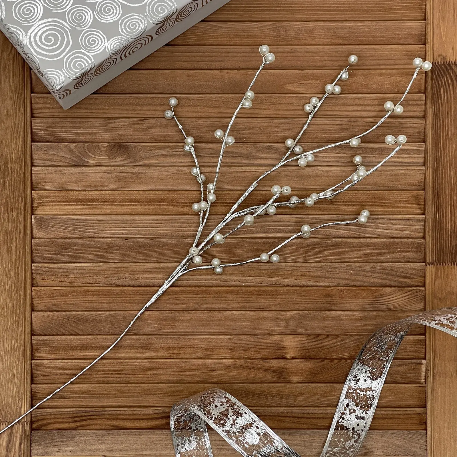 Эта декоративная ветка длиной 75 см станет идеальным элементом для вашего интерьера. Она выполнена в серебристом цвете и украшена белыми жемчужинами, что придаёт ей изысканный и элегантный вид. Используйте её для создания праздничной атмосферы или для повседневного декора, добавляя нотки стиля и утонченности в любое пространство.
