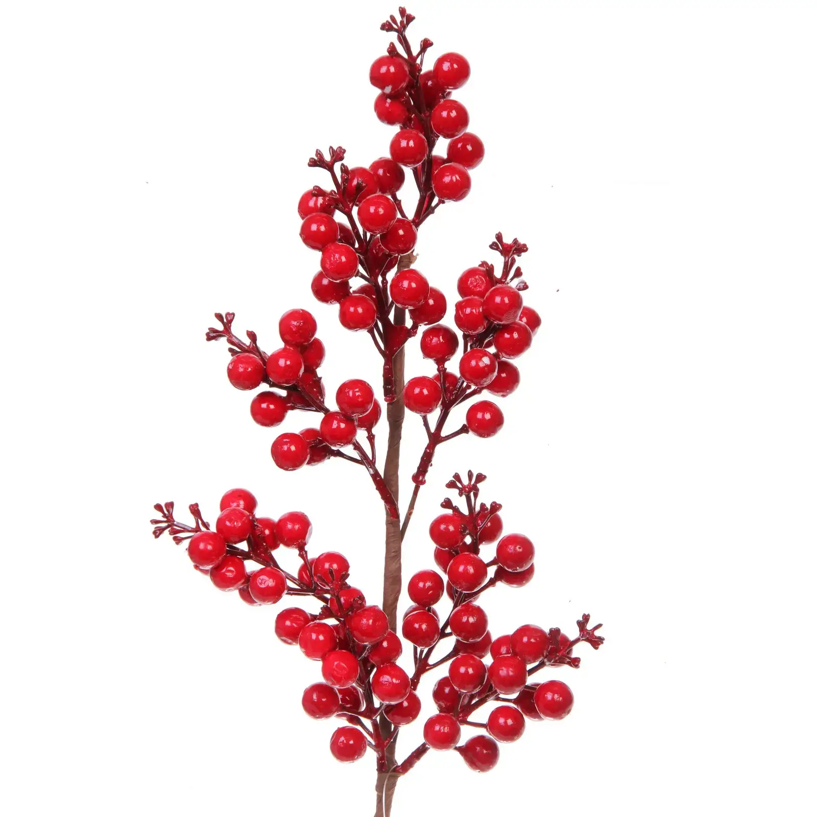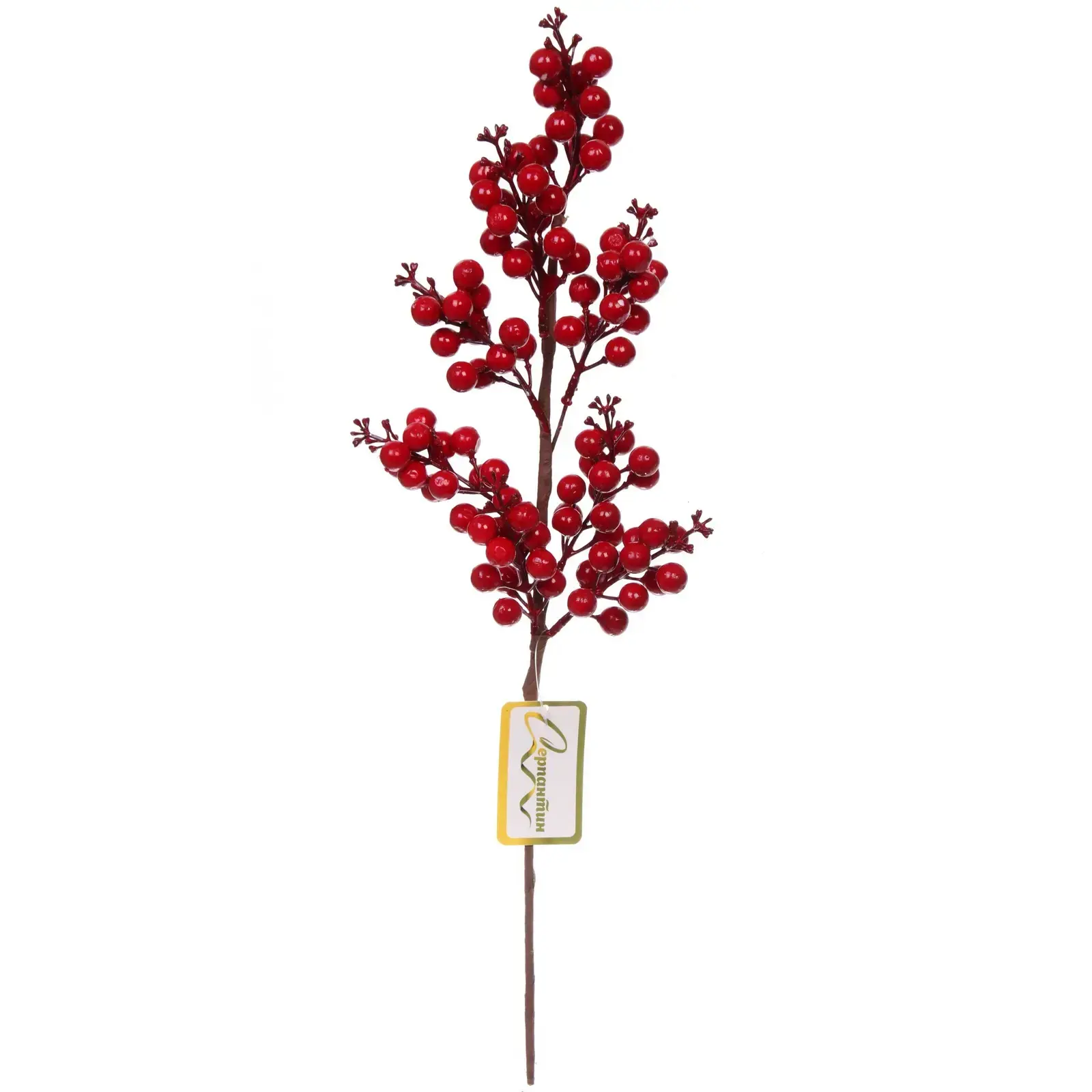 Ветка имеет высоту 50 см и состоит из нескольких ответвлений, на которых расположены ягодки разного диаметра. Ягоды окрашены в яркий красный цвет, что делает их заметными и привлекательными. Используйте ветку для создания уникальных композиций и добавьте яркие акценты в ваш интерьер.