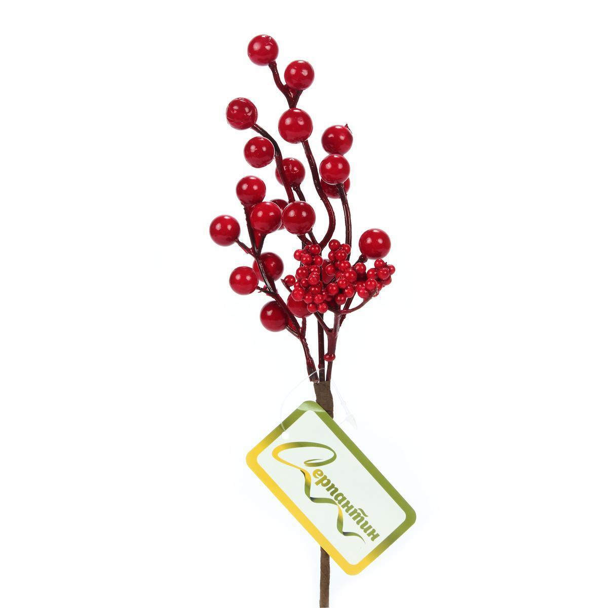 Размер ветки составляет 25 см, что делает ее универсальной для различных стилей оформления. Ярко-красные ягоды различного размера добавляют интересные акценты, а коричневые стебли создают естественный вид. Не упустите возможность сделать ваш праздник незабываемым с веткой "Зимние краски"!