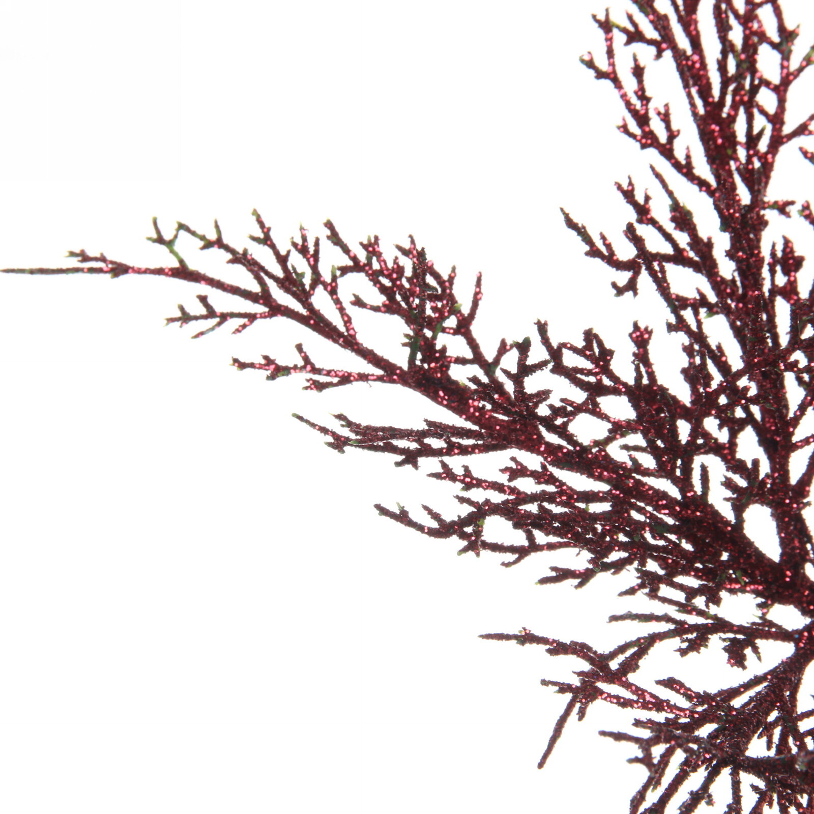 Добавьте нотку праздничного волшебства в ваш дом с декоративной веткой 'Зимний танец'. Её насыщенный рубиновый цвет и мерцающие блестки создают атмосферу зимней сказки.