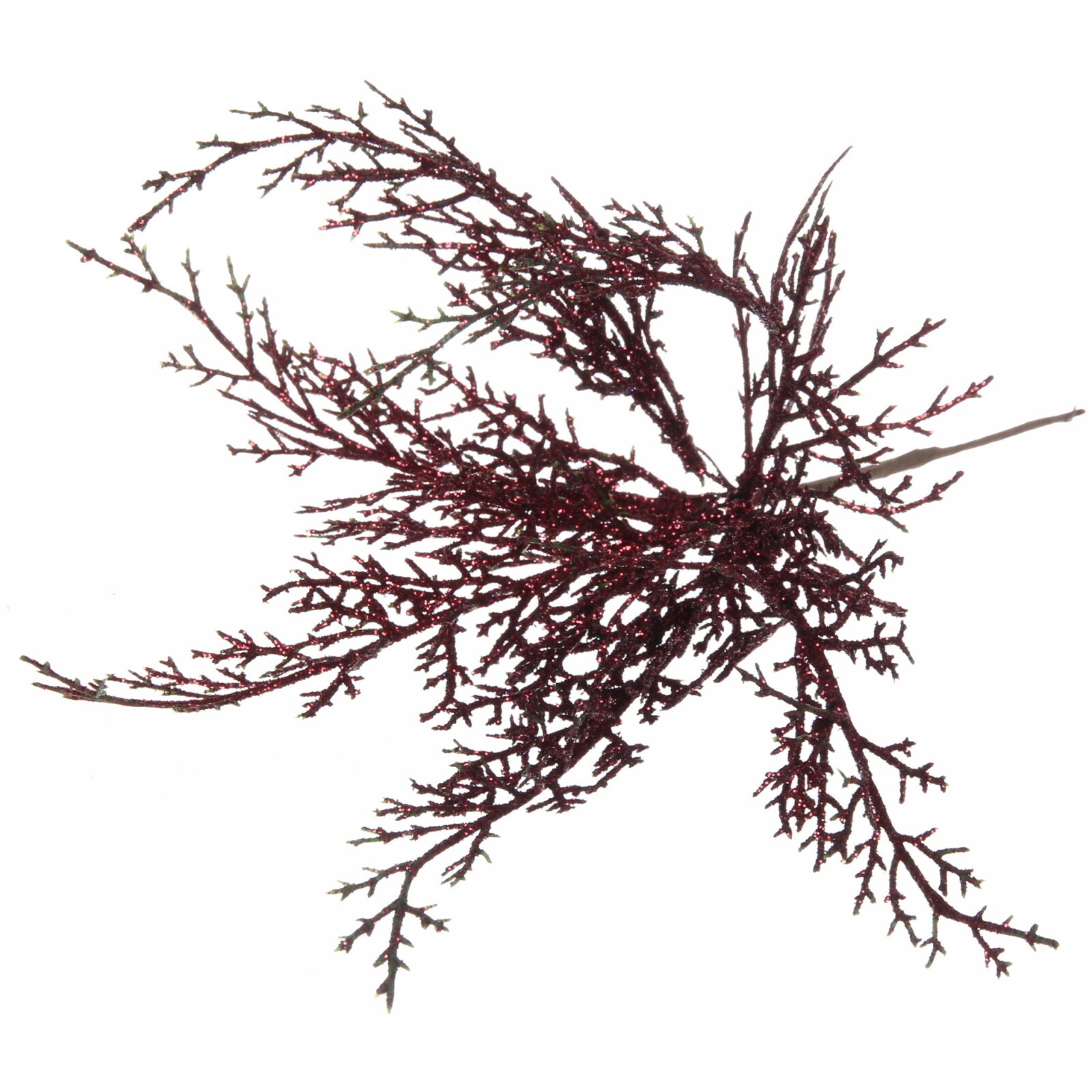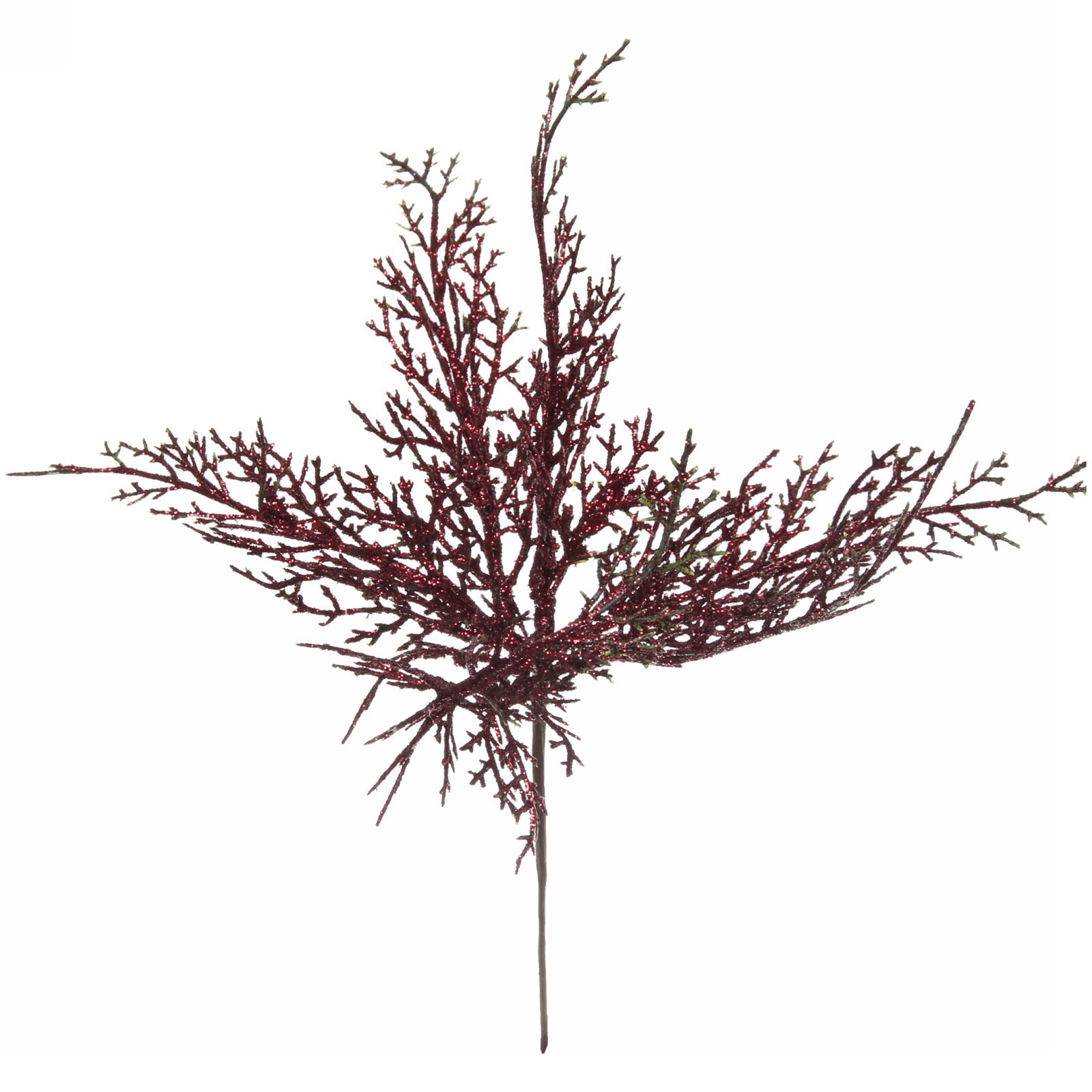 Ветка декоративная 'Зимний танец', 27см, красная с блестками, для новогоднего декора