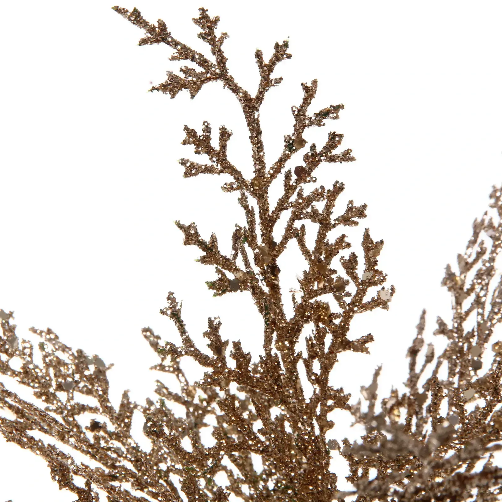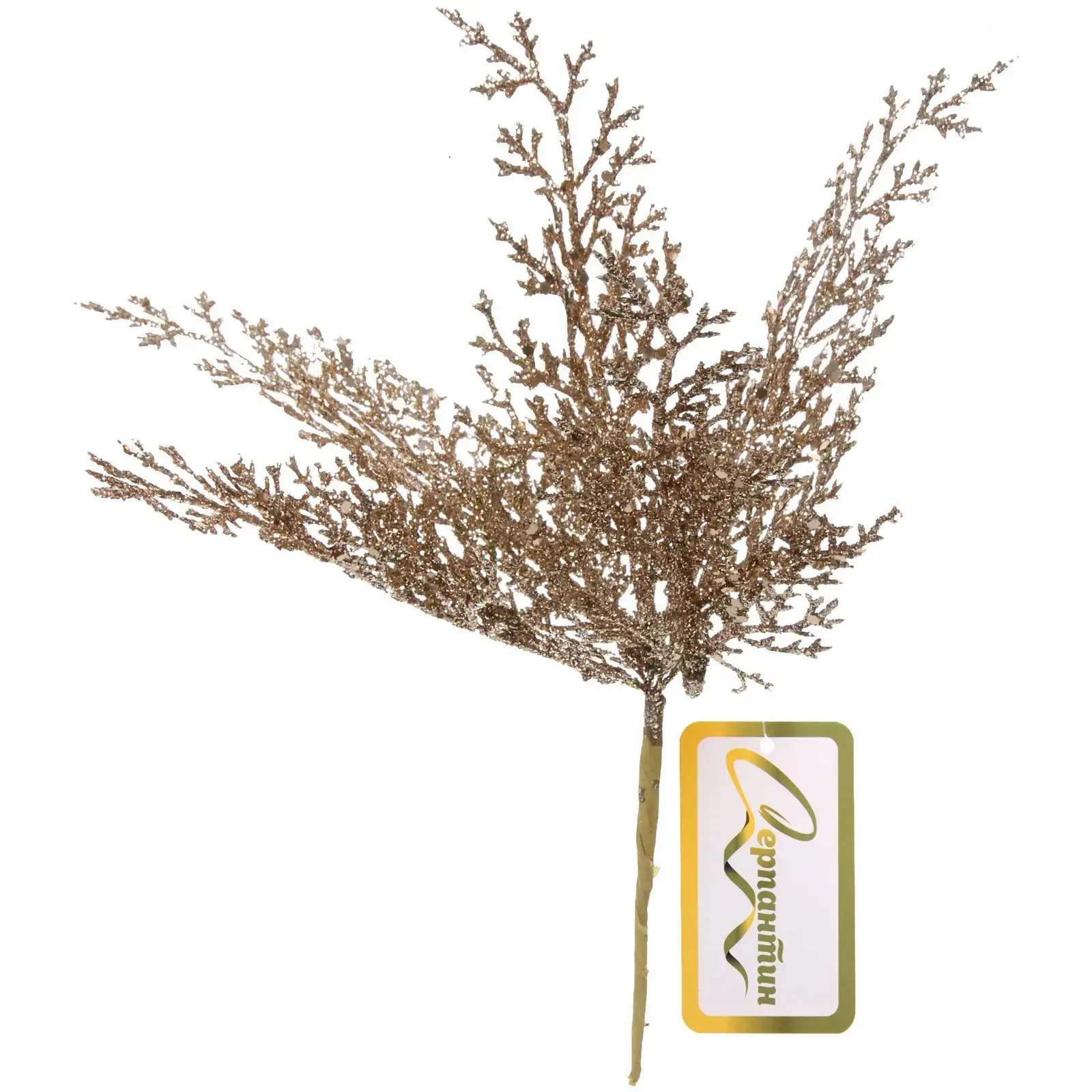 Создайте атмосферу уюта и праздника с веткой декоративной «Зимний танец». Этот элемент декора, выполненный в золотистом цвете, станет идеальным дополнением для вашего интерьера, особенно в новогодний период. Его блестящая текстура и изящная форма придают ему уникальный вид, который привлечет внимание и создаст настроение.