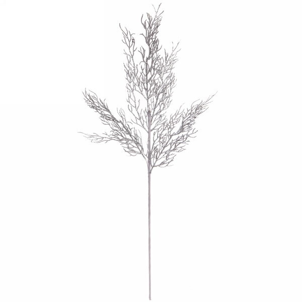 - Серебристый цвет с блестками придаёт ветке эффектный вид.