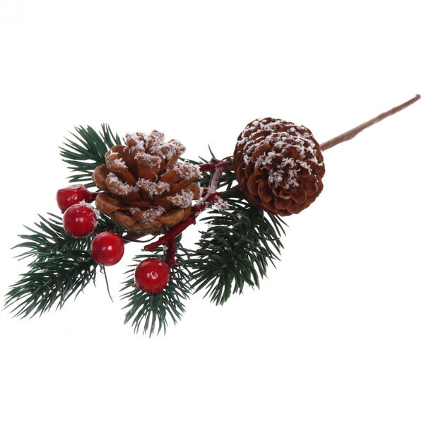 Ветка имеет длину 23 см и выполнена из качественного ПВХ и пластика, что обеспечивает её долговечность и устойчивость к внешним воздействиям. Шишки, покрытые искусственным снегом, добавляют композиции зимнего шарма, а яркие ягоды придают ей контраст и живость. Эта ветка станет не только украшением, но и символом зимних праздников, создавая атмосферу радости и тепла в вашем доме.