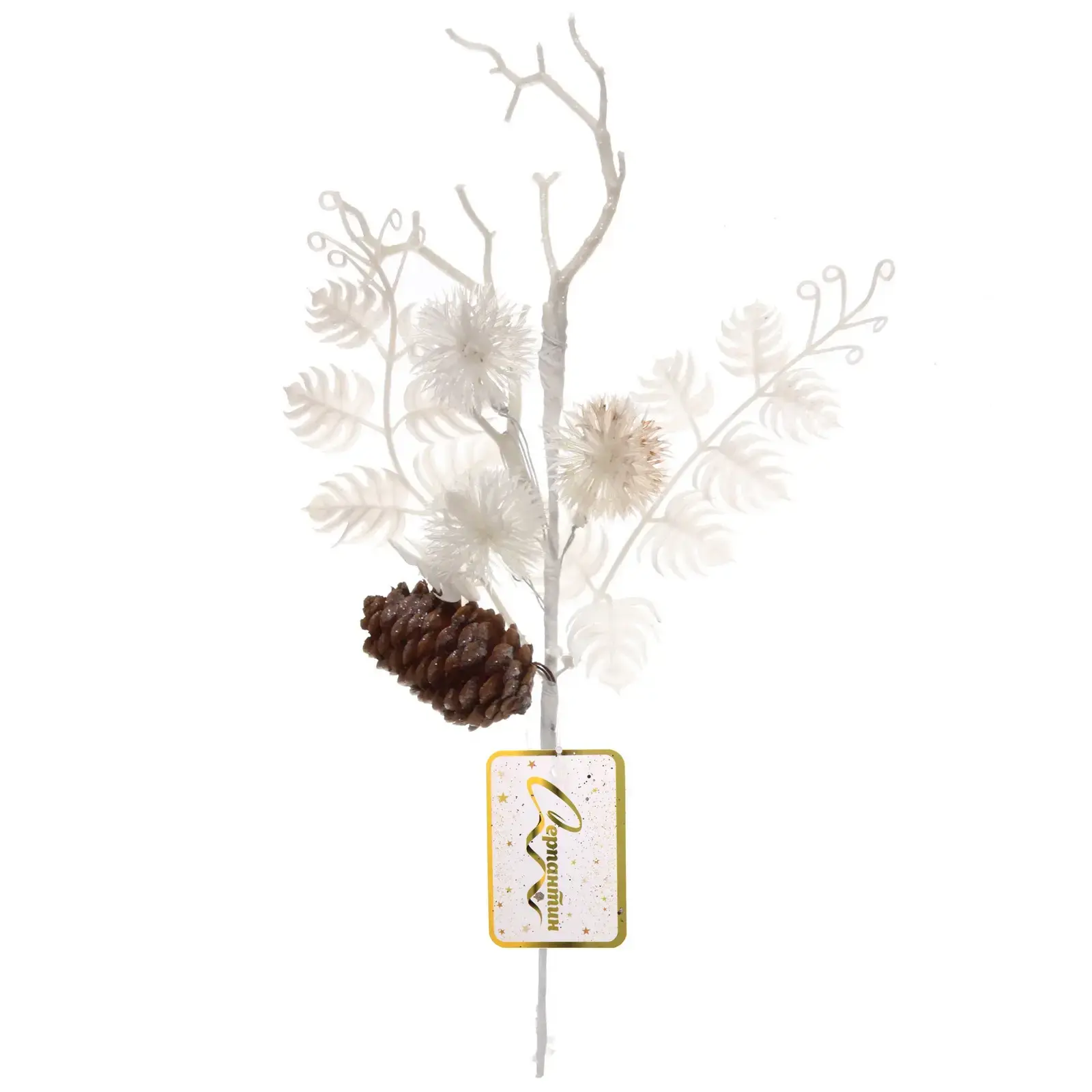 Ветка имеет длину 31 см и выполнена из прочного пластика, что делает её идеальной для использования в любых условиях. Белый цвет и натуральные детали делают её универсальным элементом, который легко впишется в любой интерьер. Не упустите возможность добавить в ваш дом частичку зимней сказки с веткой «Морозное утро»!
