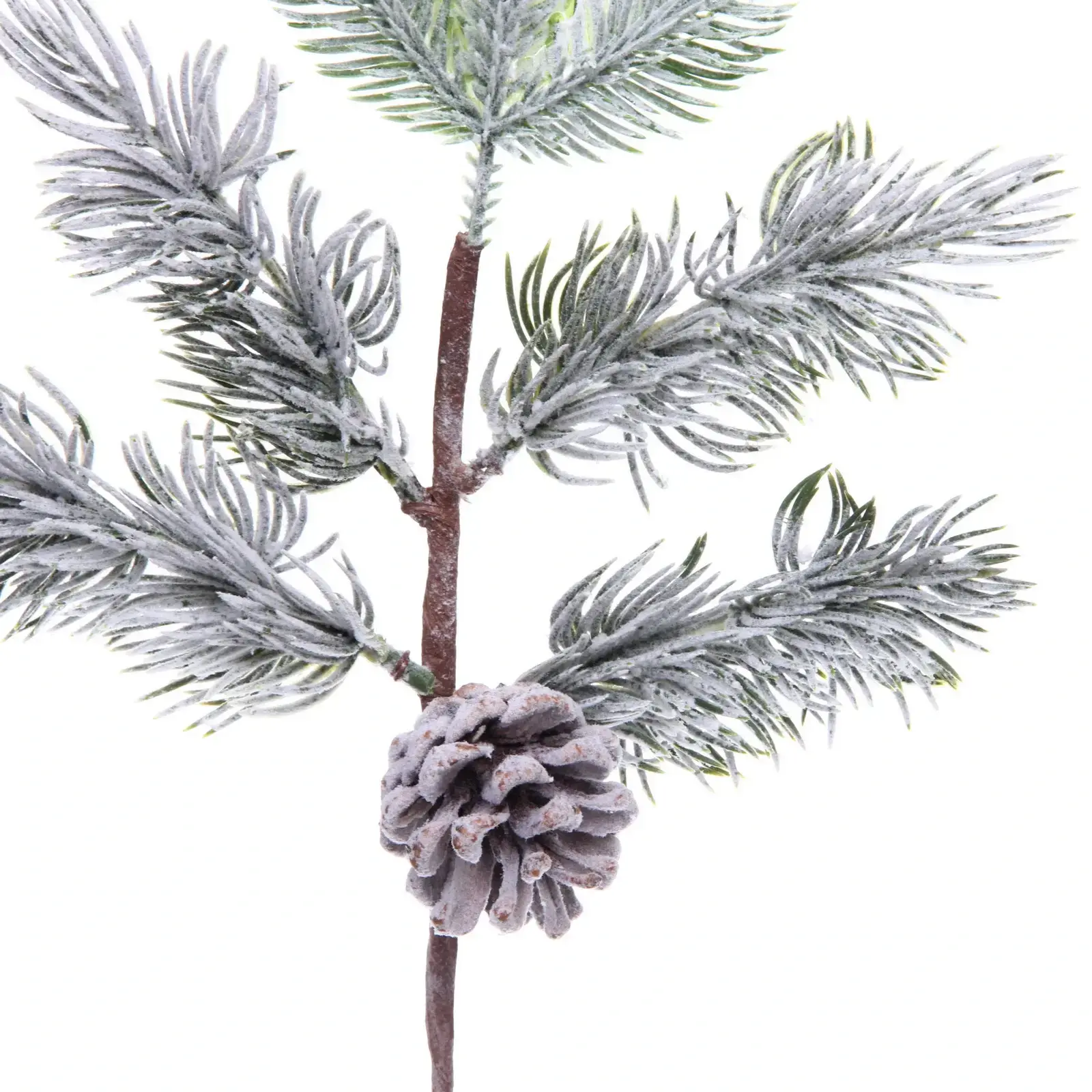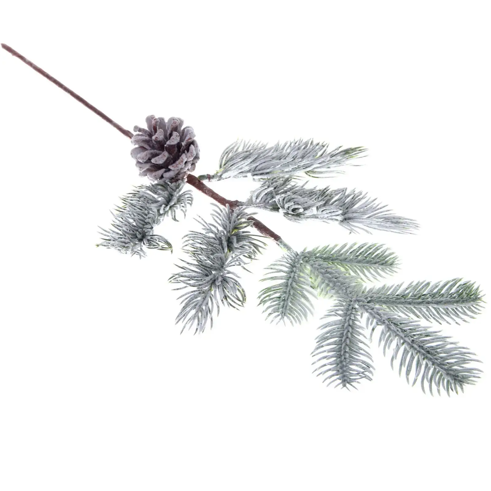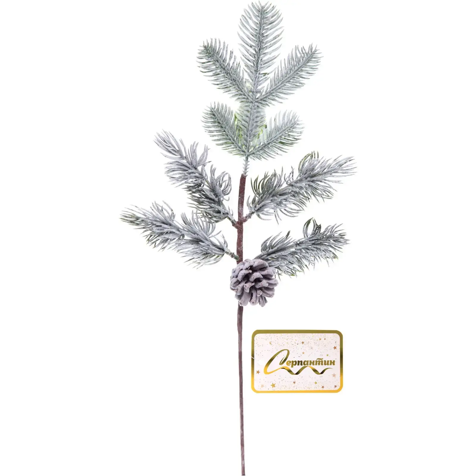 Ветка хвойная «Полярная», 40 см, с шишкой, искусственная, зелёная с инеем, пластик/пвх для декора