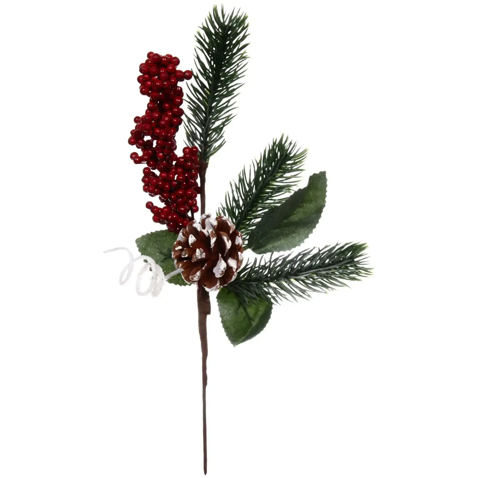 Ветка декоративная хвойная «Рябинка» с шишкой и ягодами, 27 см, для новогоднего интерьера