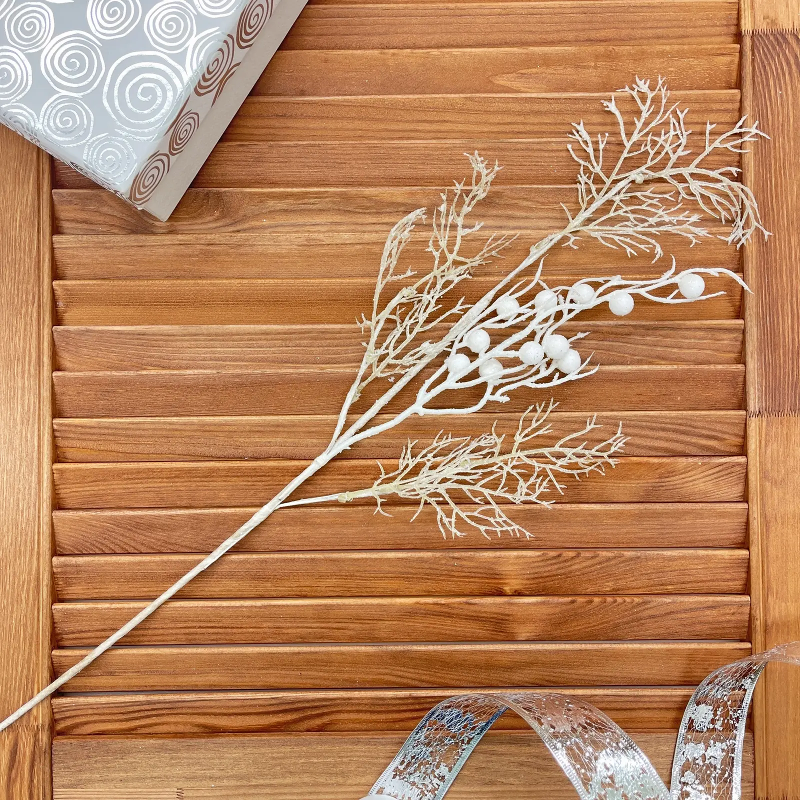 Искусственная хвойная ветка с белоснежными ягодами станет идеальным элементом праздничного оформления. Реалистичная текстура и продуманная форма создают эффект свежесрезанного зимнего растения.
