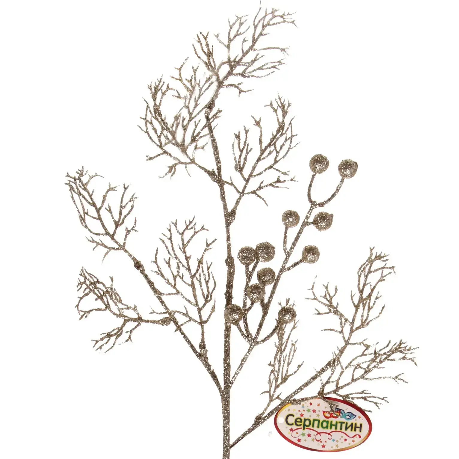 Ветка декоративная "Сияние зимы" 67см, цвет шампань, для новогоднего декора