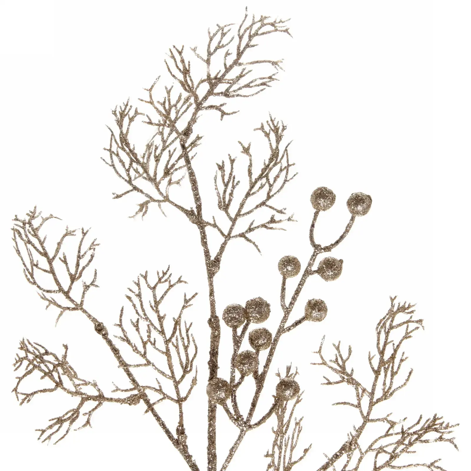 Добавьте нотку праздничного очарования в ваш дом с этой изящной декоративной веткой. Её мерцающий золотистый оттенок и ягоды создают атмосферу зимней магии.