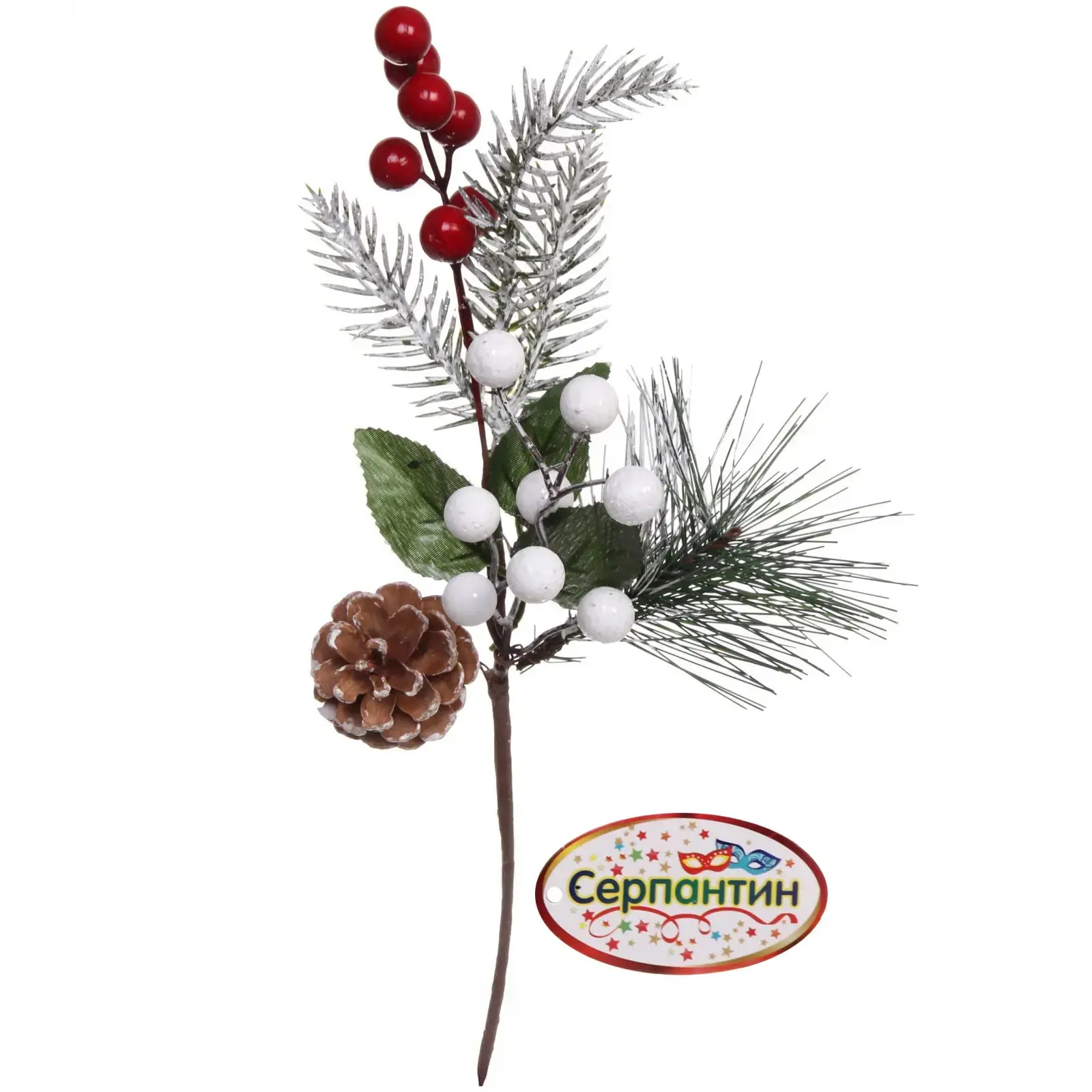 Создайте атмосферу праздника и тепла в доме с декоративной веткой "Снежная зима". Она гармонично сочетает естественные оттенки хвои, красные и белые ягоды, аккуратную сосновую шишку и нежный блеск искусственного снега, который придаёт композиции особый зимний шарм. Такой элемент декора привнесёт в ваш интерьер ощущение приближения Нового года, уюта и свежести.