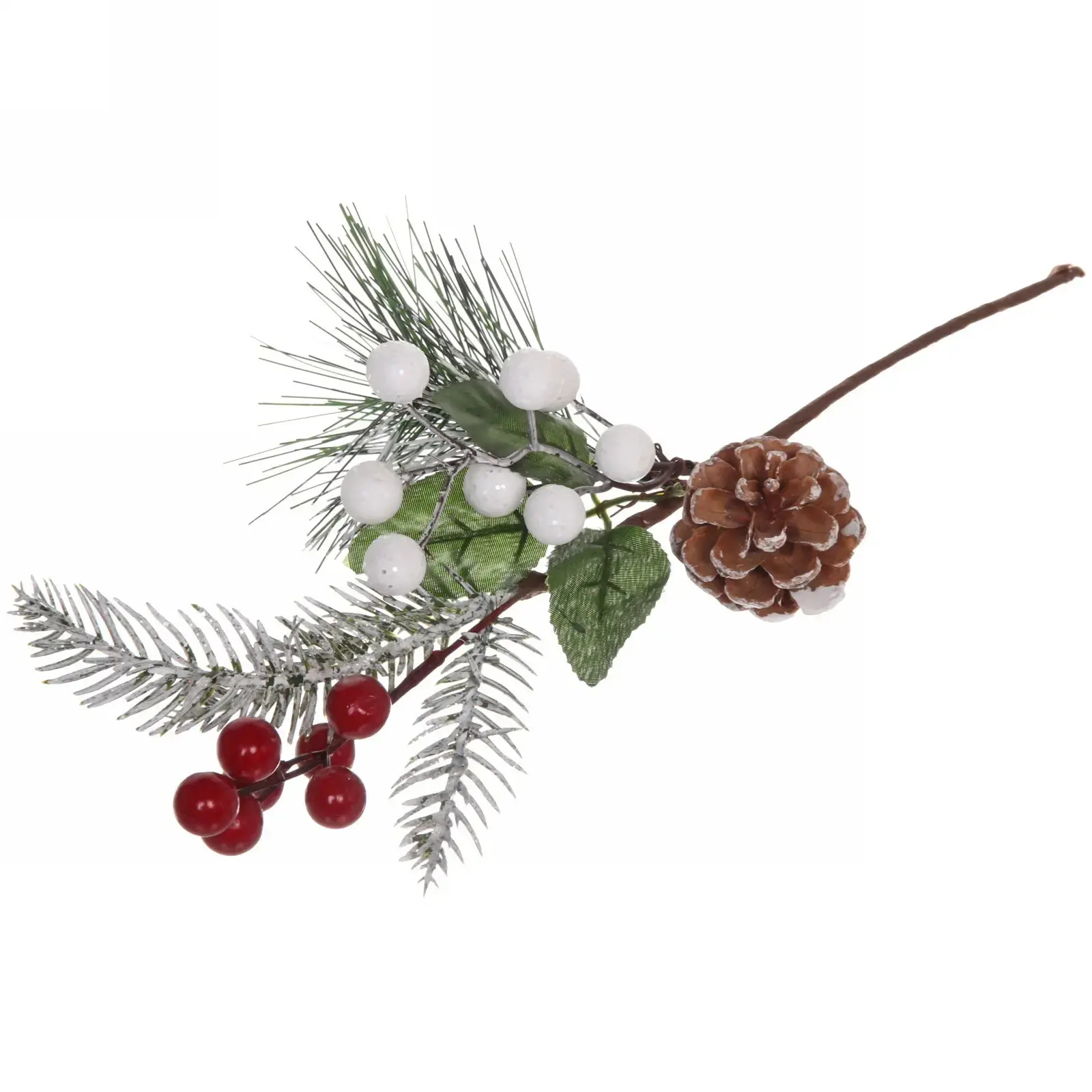 Длина ветки — 34 см, материал — пвх и пластик. Благодаря лёгкому весу её можно закрепить практически в любом месте: закрепить на венке, вставить в вазу или использовать в рождественских букетах. Красные и белые ягоды создают контраст, подчёркивая зимнюю тематику, а шишка и снег добавляют натуральности. Ветка станет отличным выбором для тех, кто хочет добавить в интерьер атмосферу праздника без лишних хлопот.
