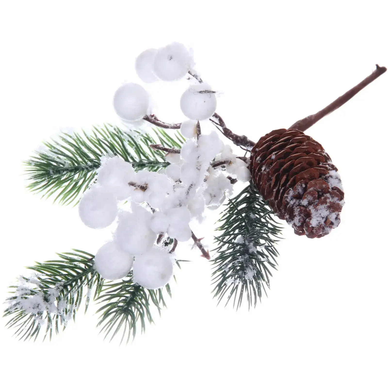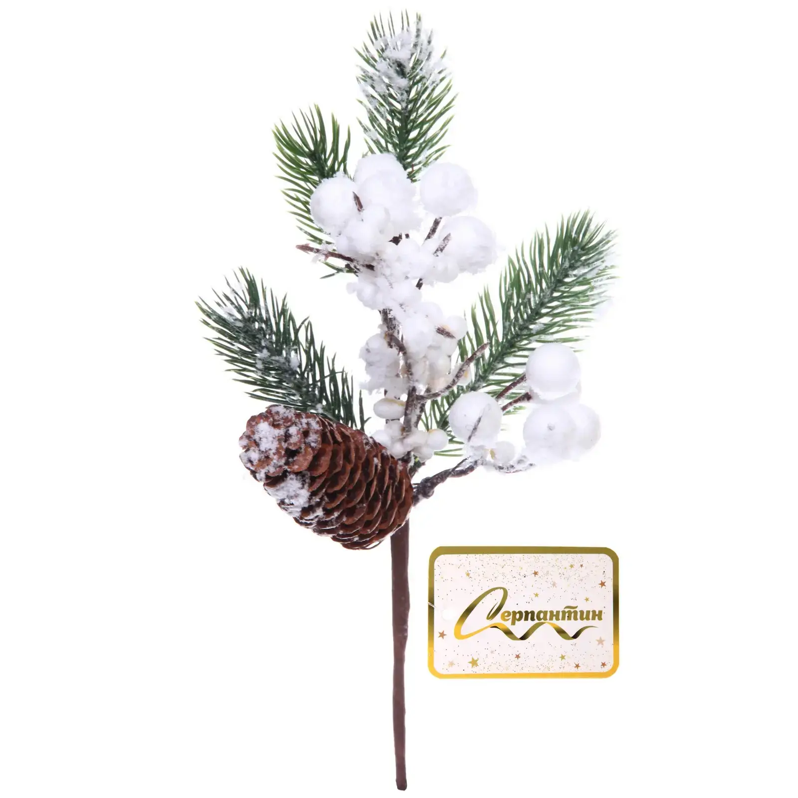 - Декор: белые ягоды и шишка добавляют изюминку и делают ветку более привлекательной.