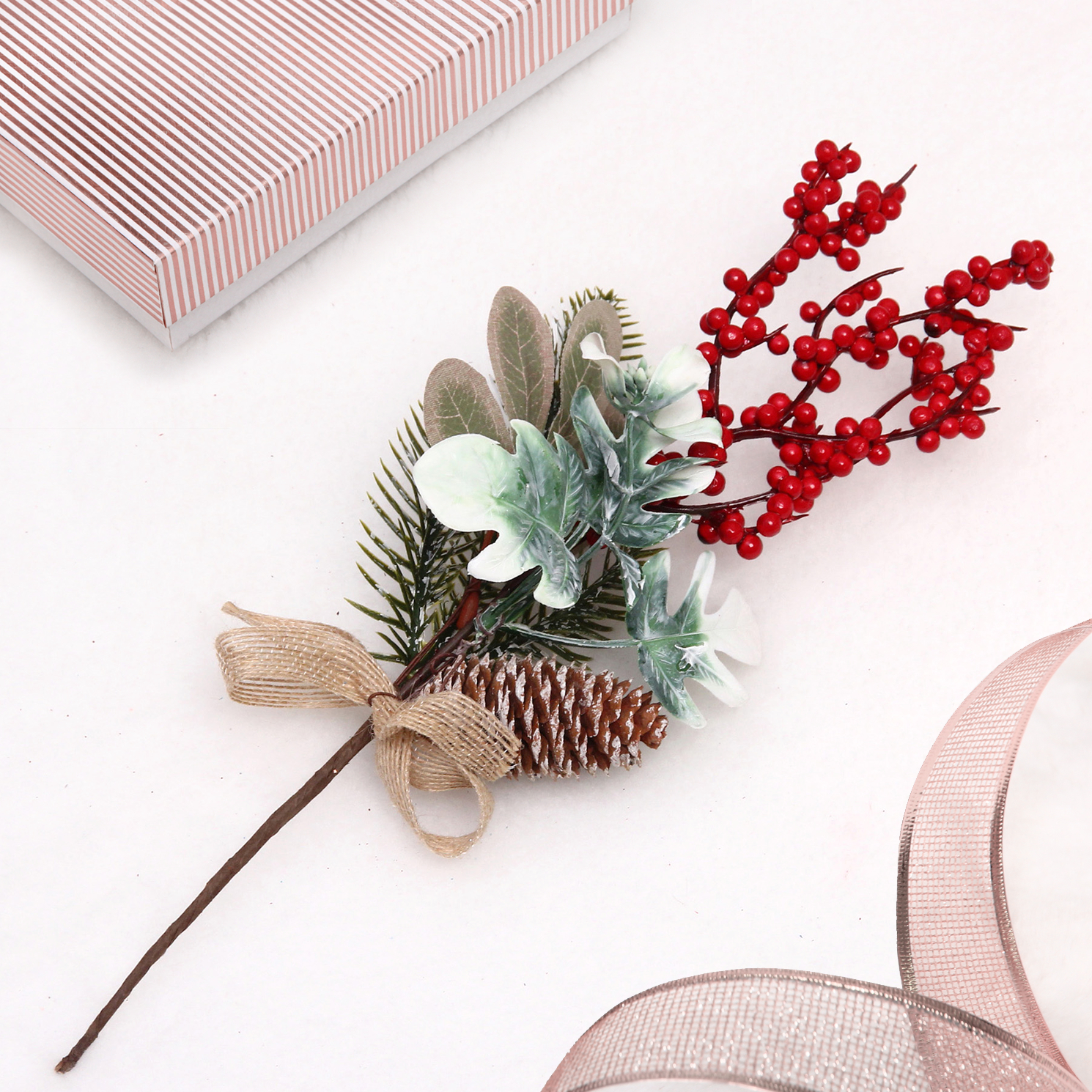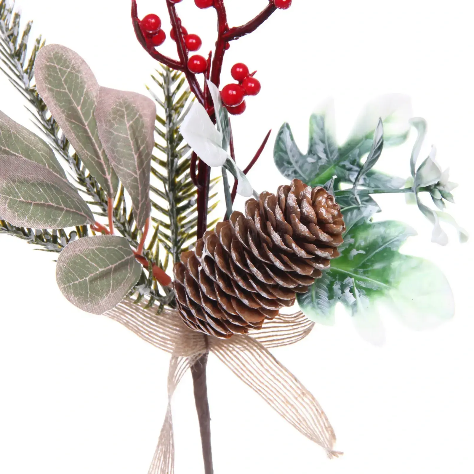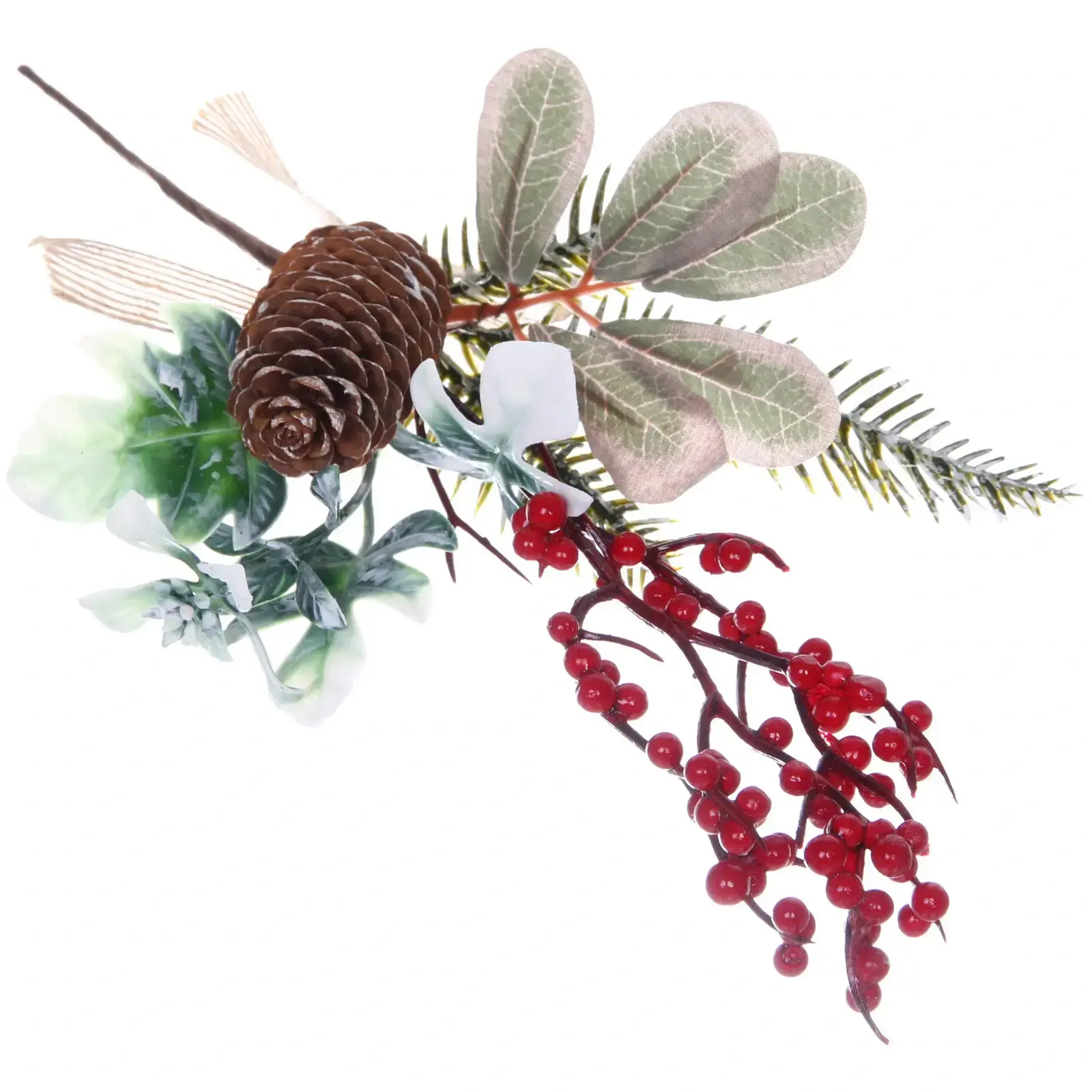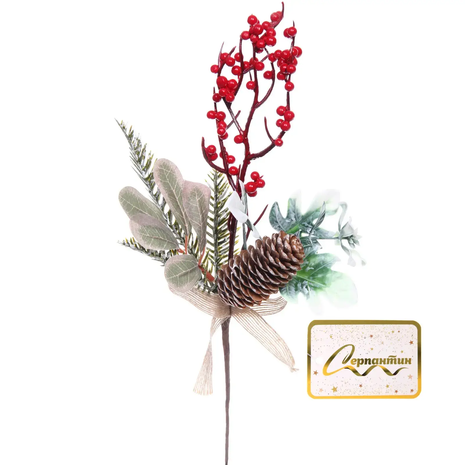 Эффектная ветка с хвойными элементами, красными ягодами и натуралистичной шишкой станет изюминкой вашего декора. Готовое решение для создания новогоднего настроения без необходимости ухода за живыми растениями.