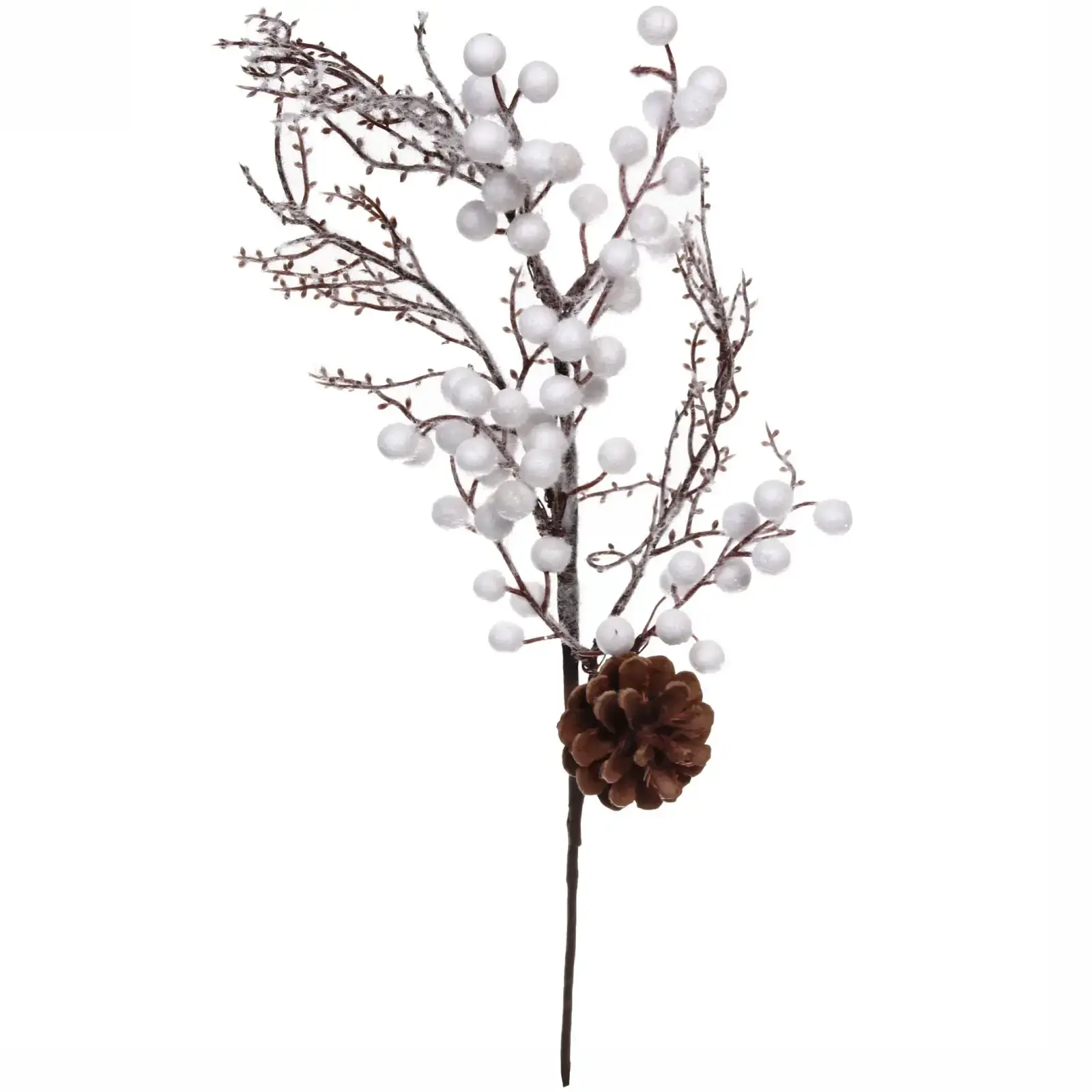 Ветка имеет длину 60 см, что делает её универсальной для различных видов декора. Коричневые стебли и белые шарики, имитирующие ягоды, создают стильный контраст, а шишка добавляет натуральности. Используйте ветку «Загадка» для создания уникальных композиций, которые будут радовать глаз и поднимать настроение в холодное время года.