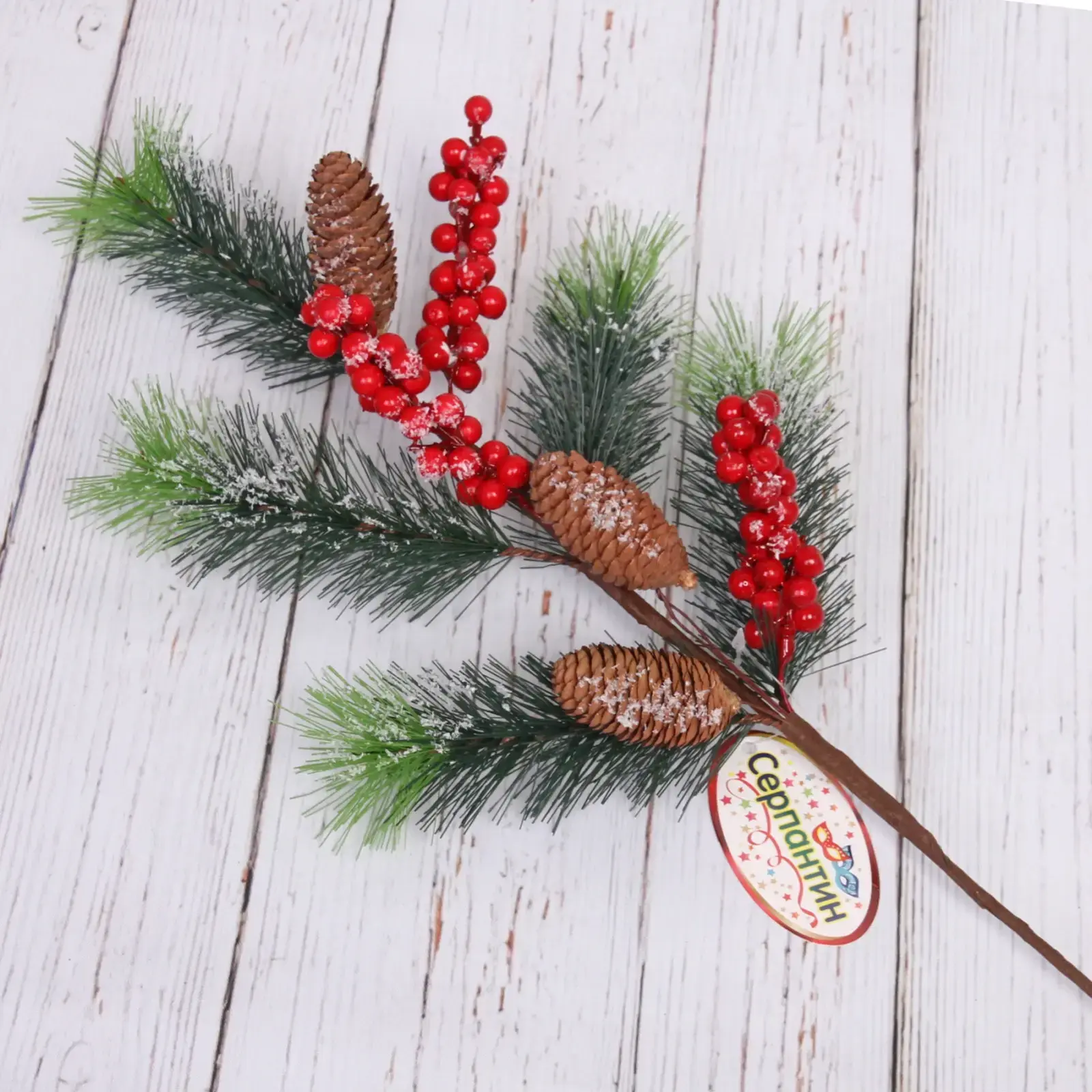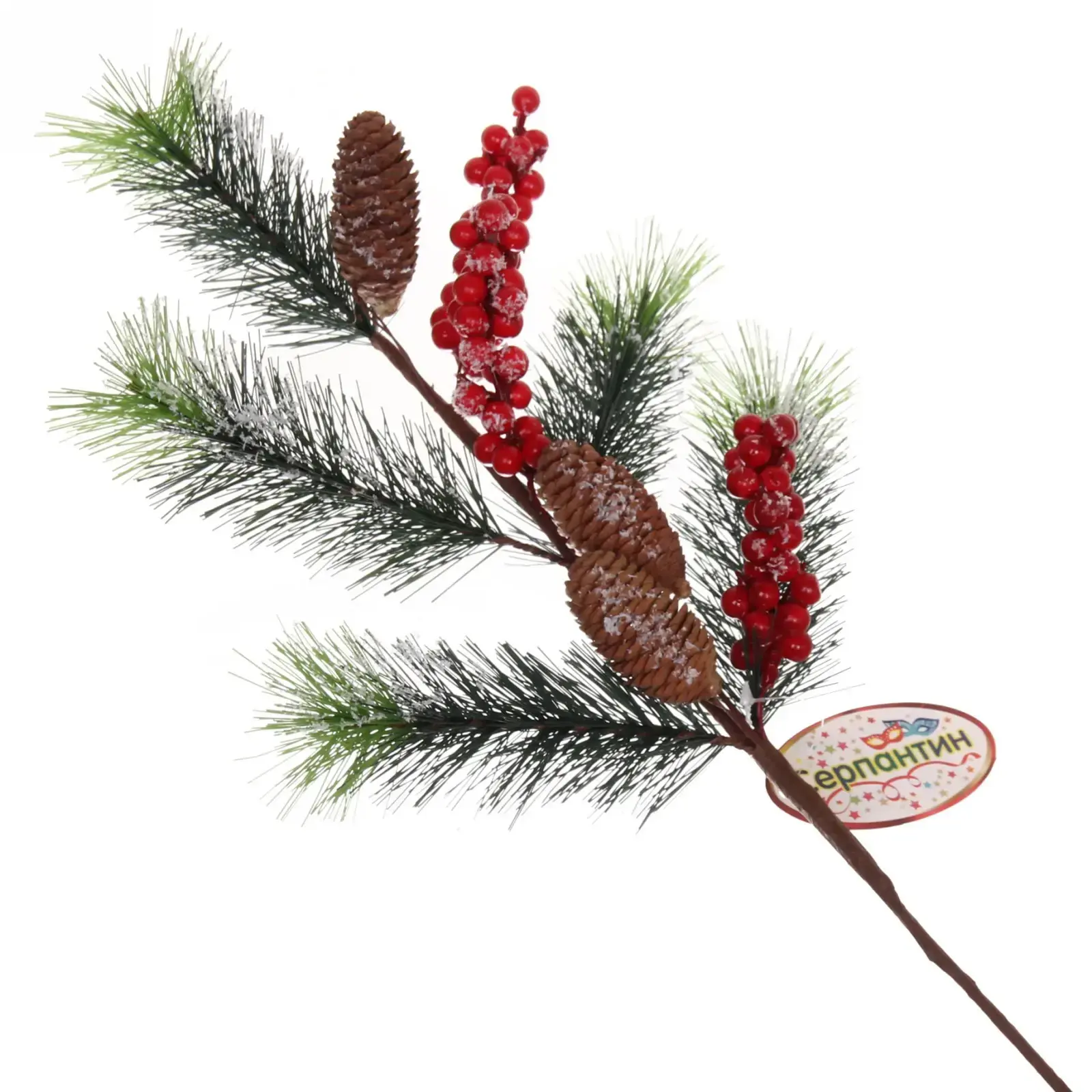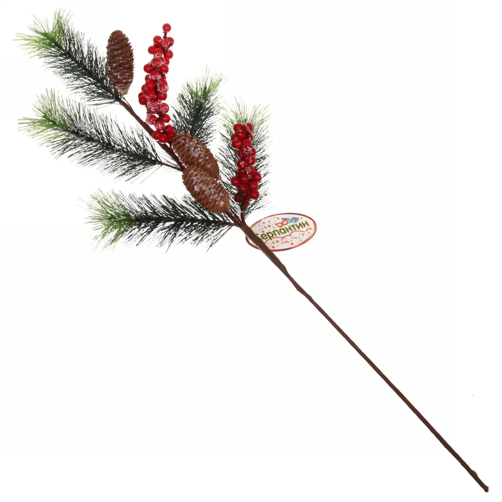 Ветка декоративная 'Запах хвои', 61см, с шишками и ягодами, для новогоднего декора