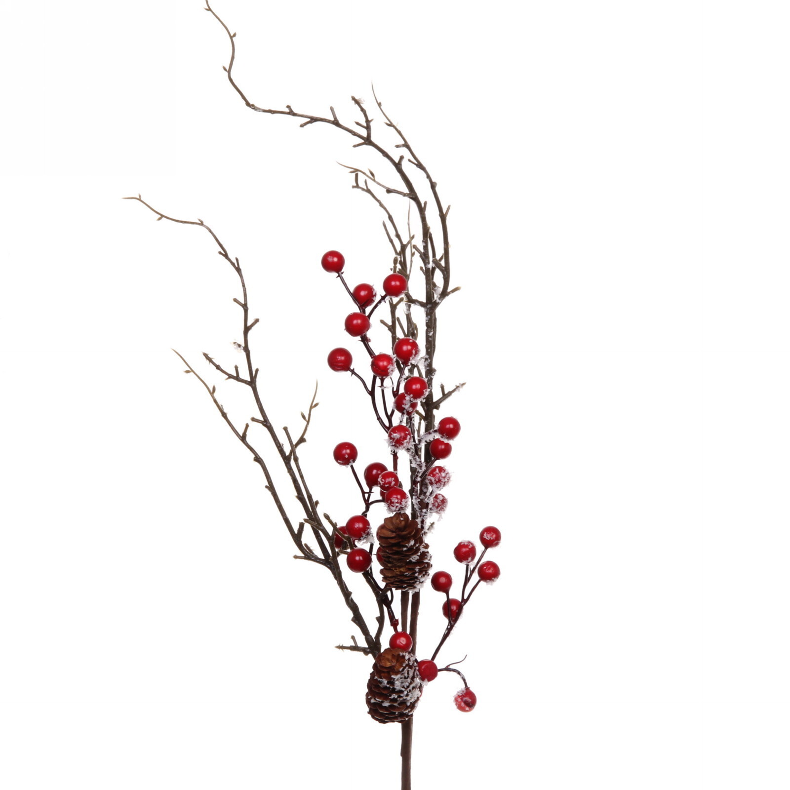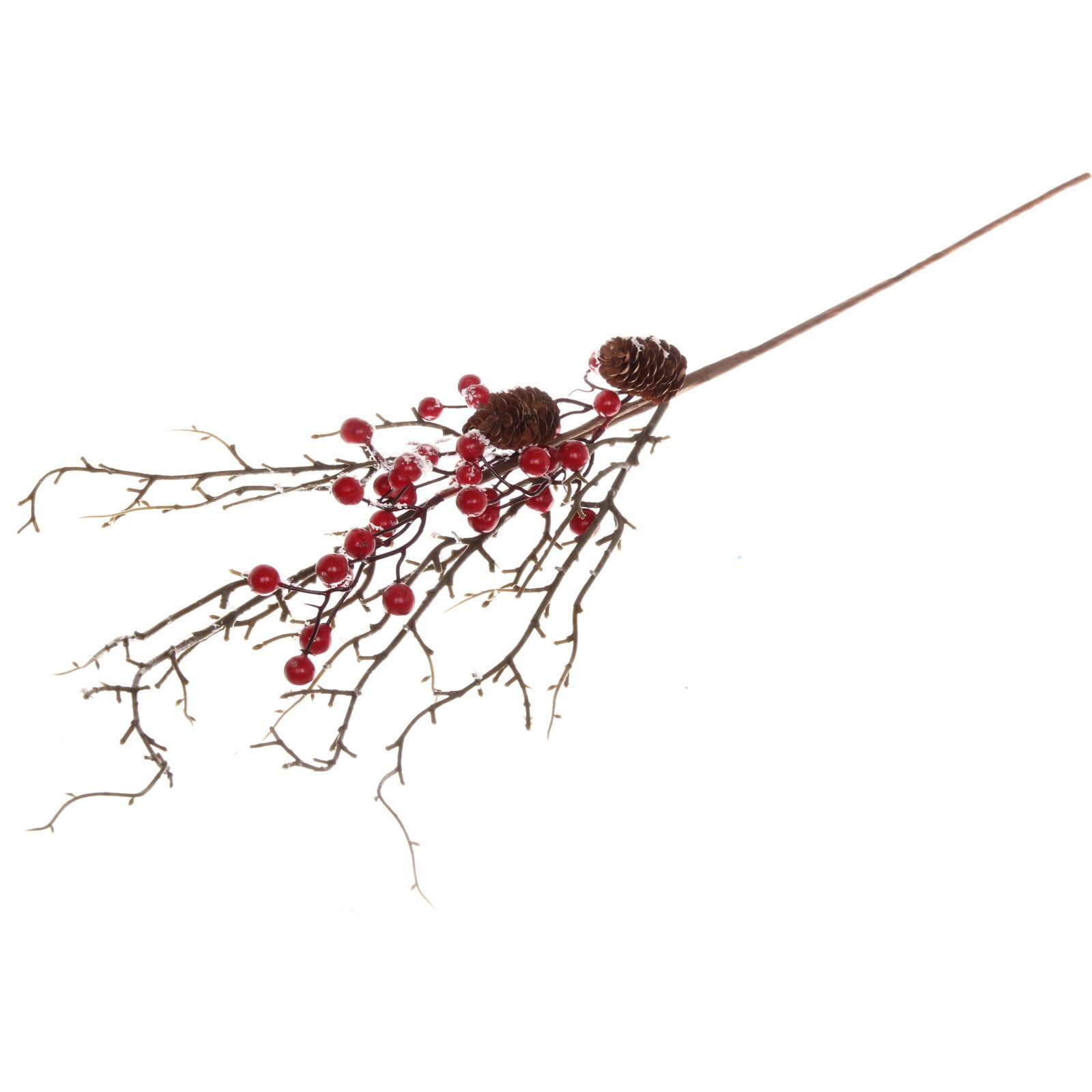 Материалы: ПВХ, пластик. Цвет: коричневые ветки с ярко-красными ягодами и белыми вкраплениями снега. Подходит для использования внутри помещений в доме, магазине, кафе и офисе, создавая уютную и праздничную атмосферу.
