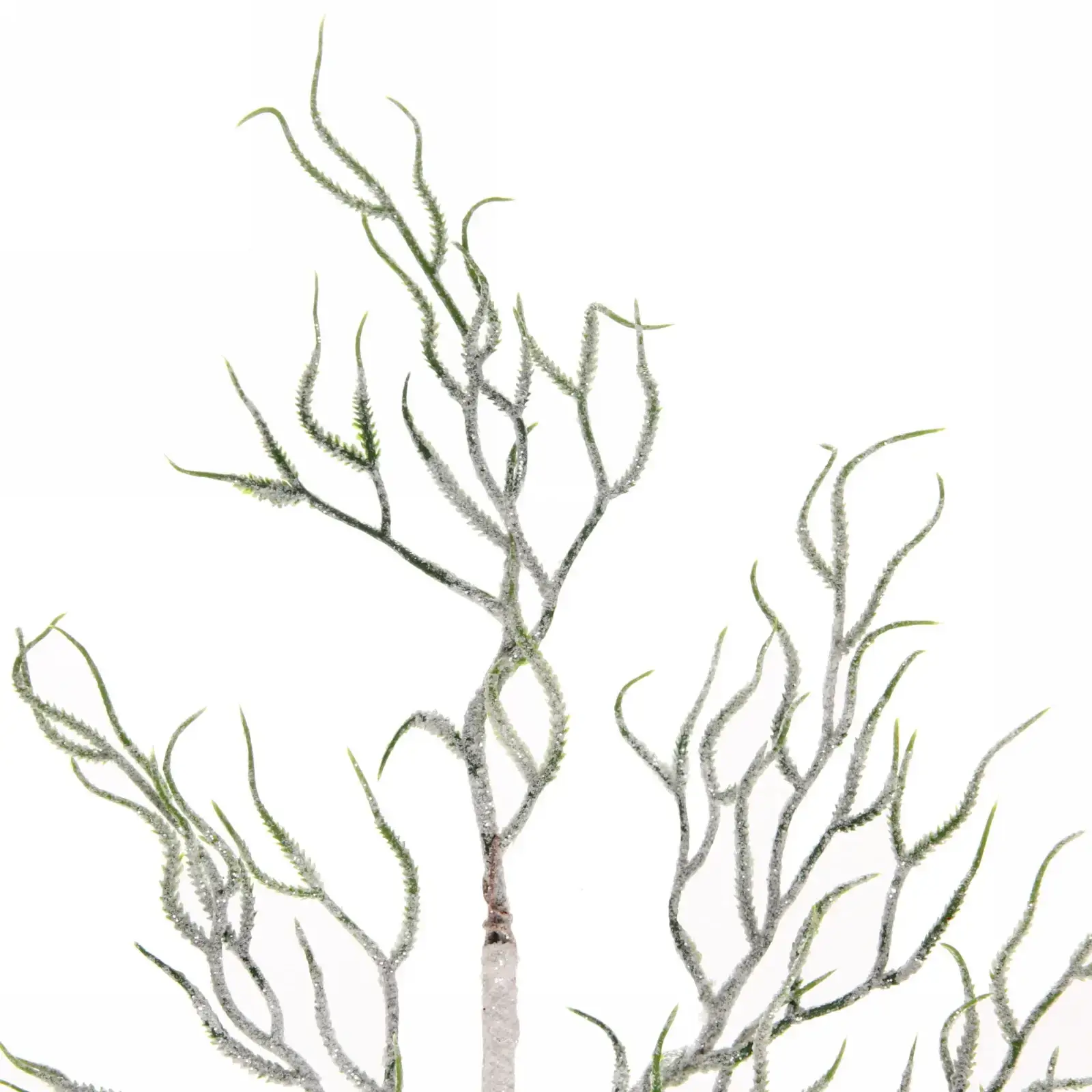 Декоративная ветка 'Зимняя свежесть' мгновенно создаст праздничную атмосферу в вашем доме. Её элегантный дизайн и нежные оттенки белого с зелеными акцентами напоминают первый снег на ветвях деревьев.