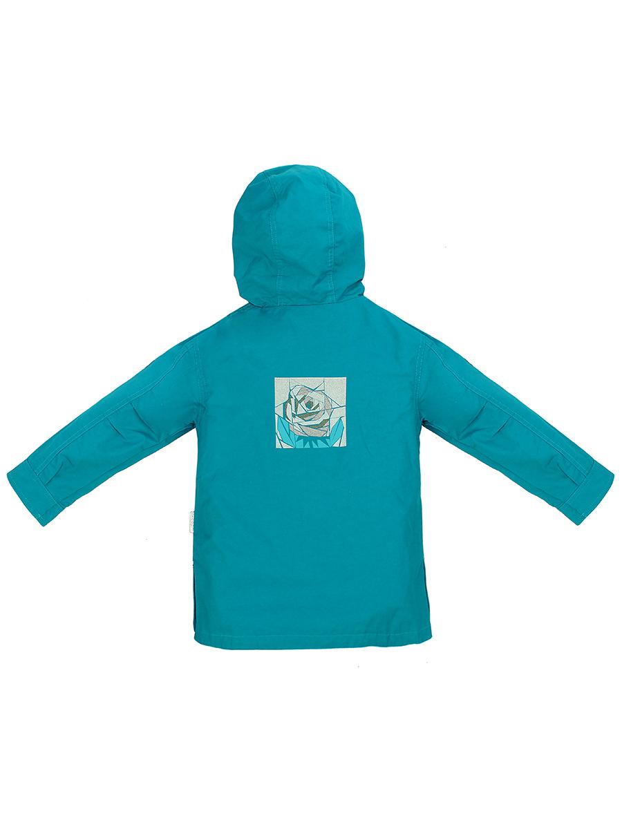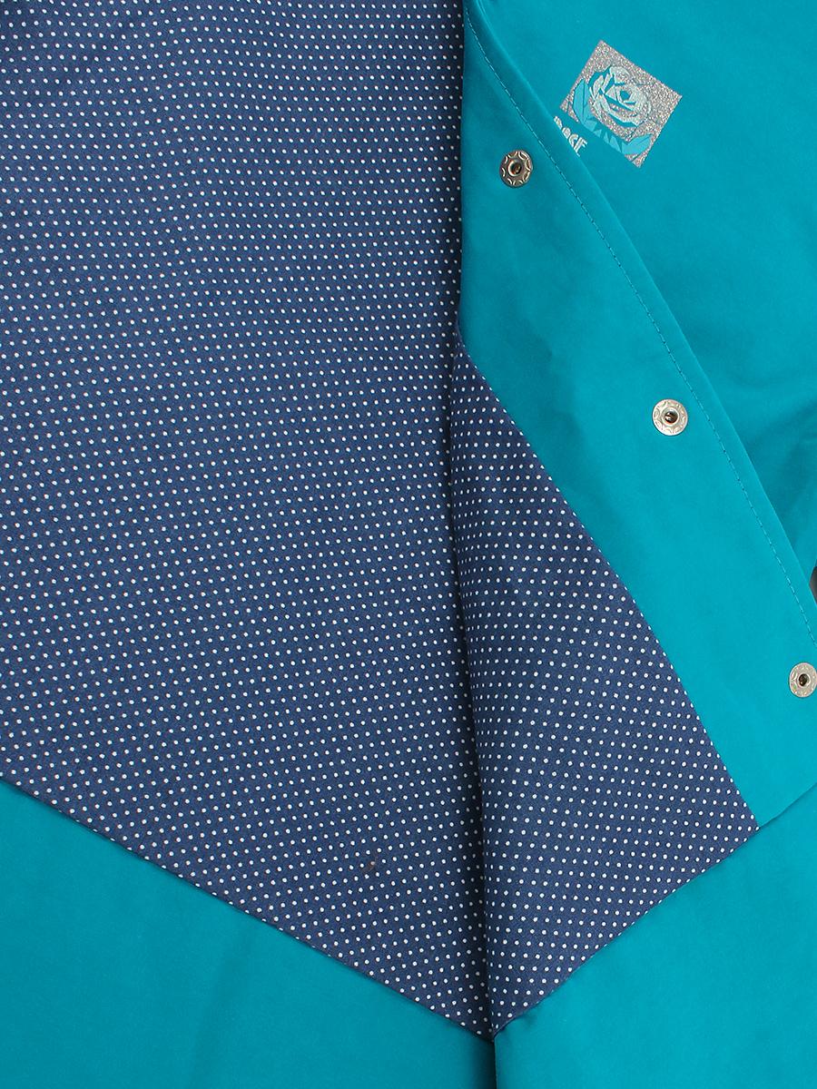 Несъемный капюшон надёжно защищает от ветра, а двухшовный рукав обеспечивает максимальную свободу движений. Модель выполнена в стильном бирюзовом цвете с элегантным серебристым декором.