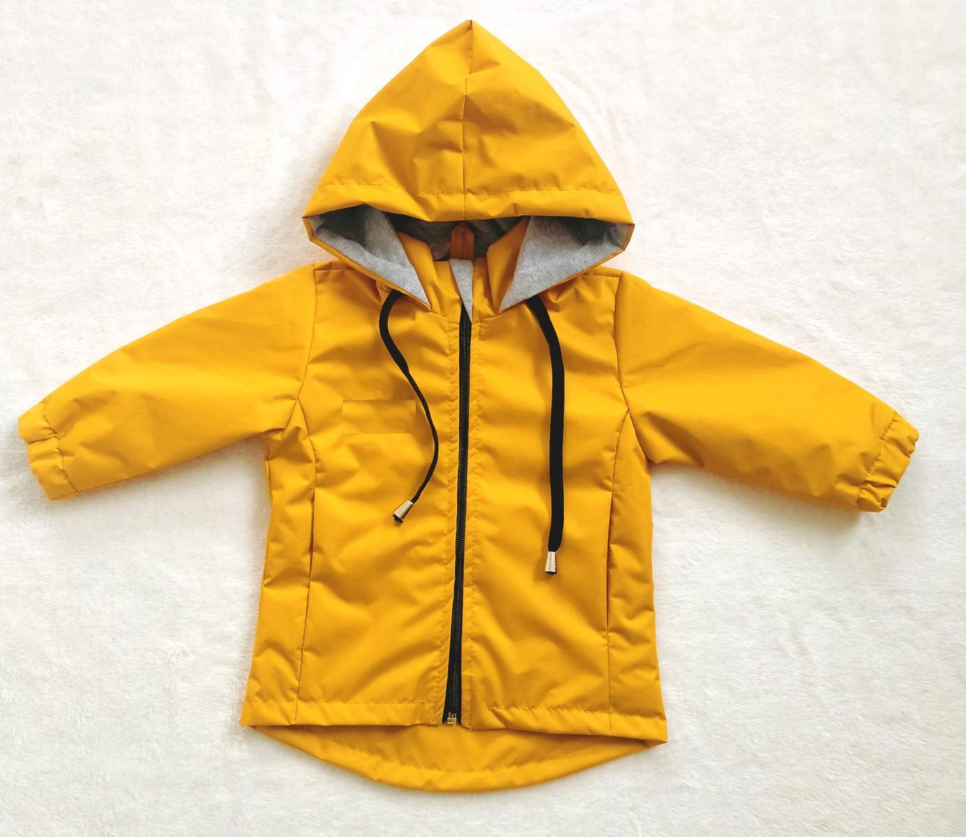 Прогулок в межсезонье, походов в школу или детский сад, активного отдыха на природе. Горчичный цвет легко сочетается с любой одеждой, а серый подклад капюшона добавляет стильный акцент.