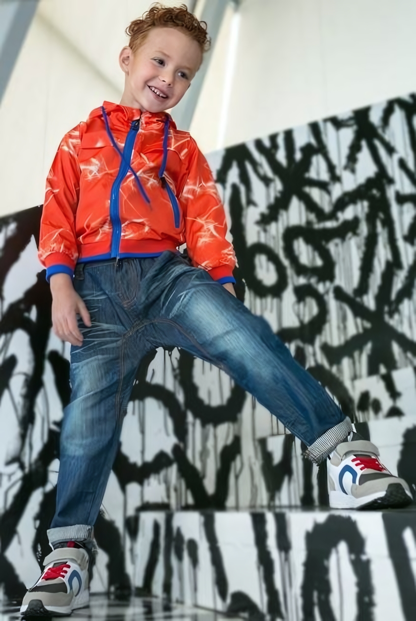 Эта ветровка создана для подвижных мальчиков, которые любят бегать, прыгать и исследовать мир. Оранжевый цвет и яркие синие детали делают её заметной, а продуманный фасон гарантирует свободу движений.