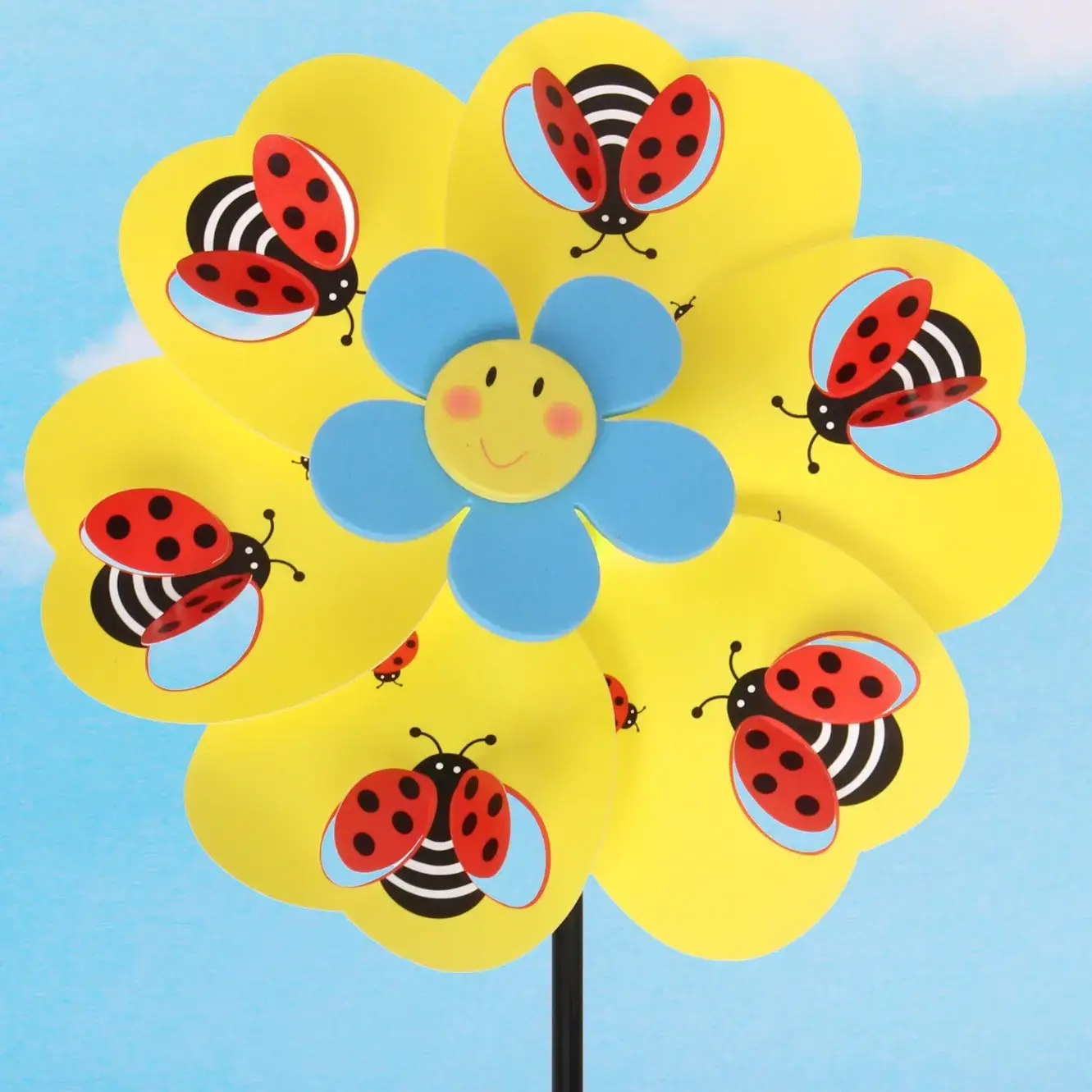 Почему стоит выбрать именно этот ветрячок? Во-первых, он выполнен из качественного пластика, что обеспечивает долговечность и устойчивость к погодным условиям. Во-вторых, его яркий дизайн с изображениями божьих коровок и улыбающимся цветком в центре не оставит равнодушным никого. В-третьих, ветрячок легко перемещать и устанавливать, что делает его практичным выбором для любого сада.