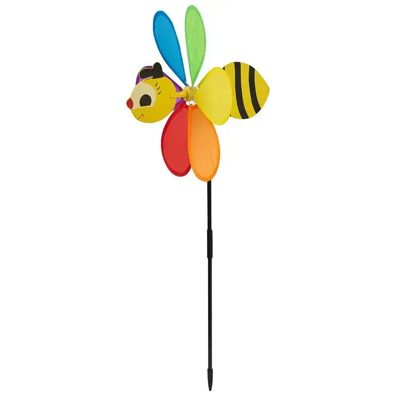 Ветряк 'Пчёлка' с вращающимися элементами в форме цветка создаст динамичный акцент в саду или на дачном участке. Этот яркий декоративный элемент привлекает внимание и придает пространству игривое настроение даже при легком ветерке.