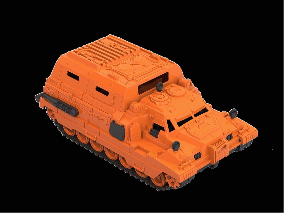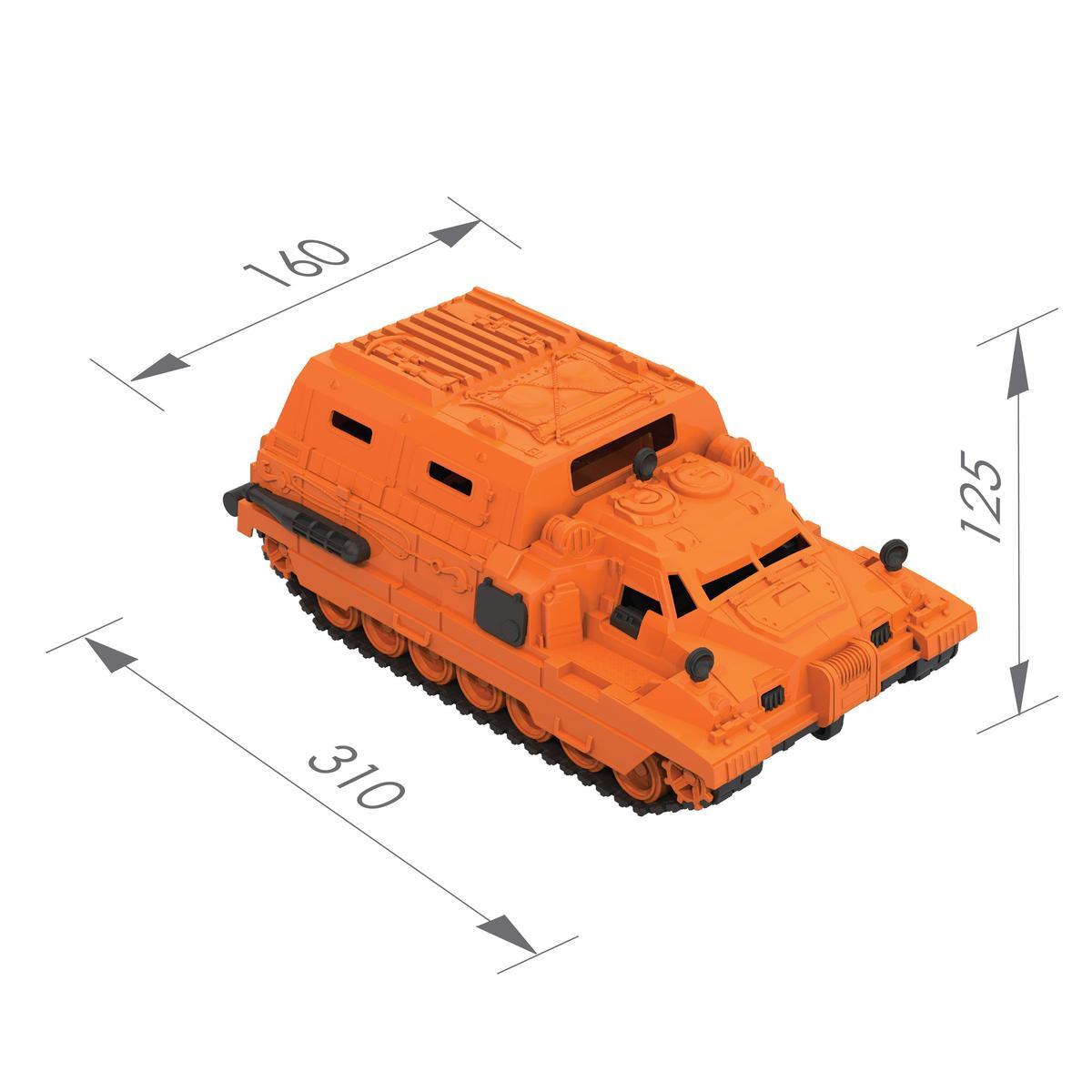 Модель размером 31×16×12.5 см воспроизводит характерные черты армейского транспорта: угловатый кузов с вентиляционными решётками, имитацию гусеничного хода и детализированные фары. Усиленное крепление подвижных элементов гарантирует долговечность даже при активном использовании.