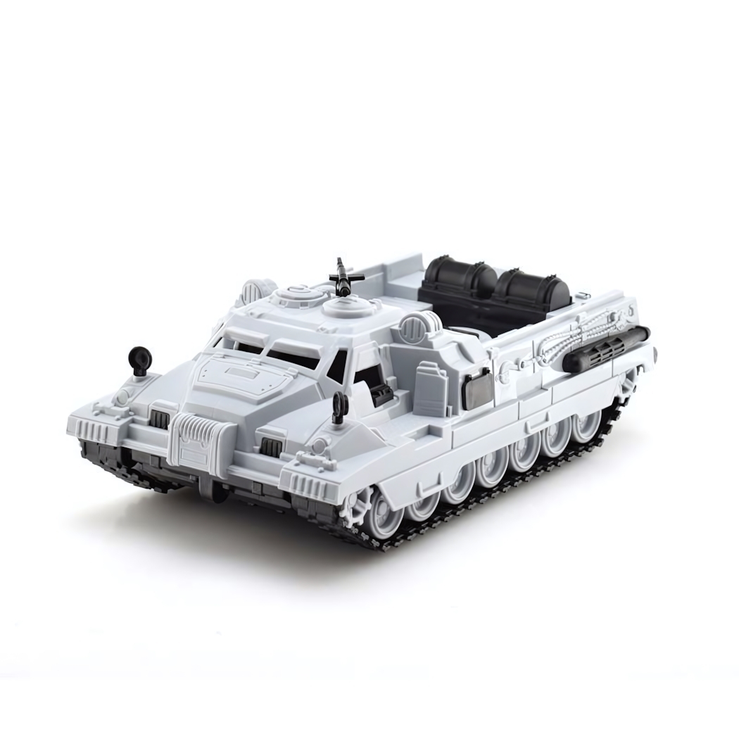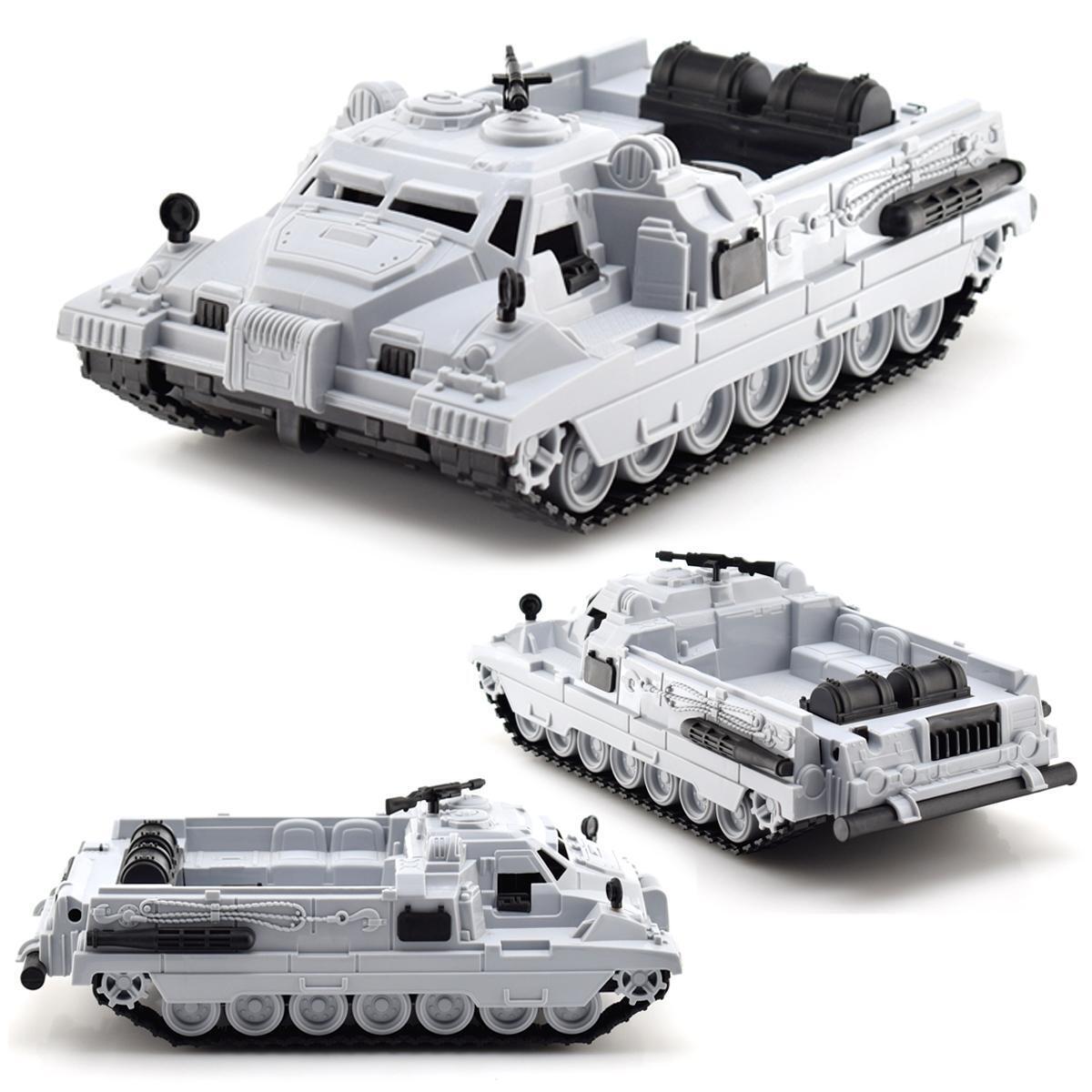 Модель выполнена из качественного пластика в серой цветовой гамме. Размеры: 16х31х11 см. Гусеницы неподвижны, движение осуществляется на скрытых колесах. Все подвижные элементы надежно закреплены.