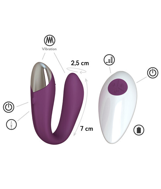 Вибратор для пар «Infinite Fera» с пультом ДУ, фиолетовый, силикон/ABS пластик, 7,5см, водонепроницаемый