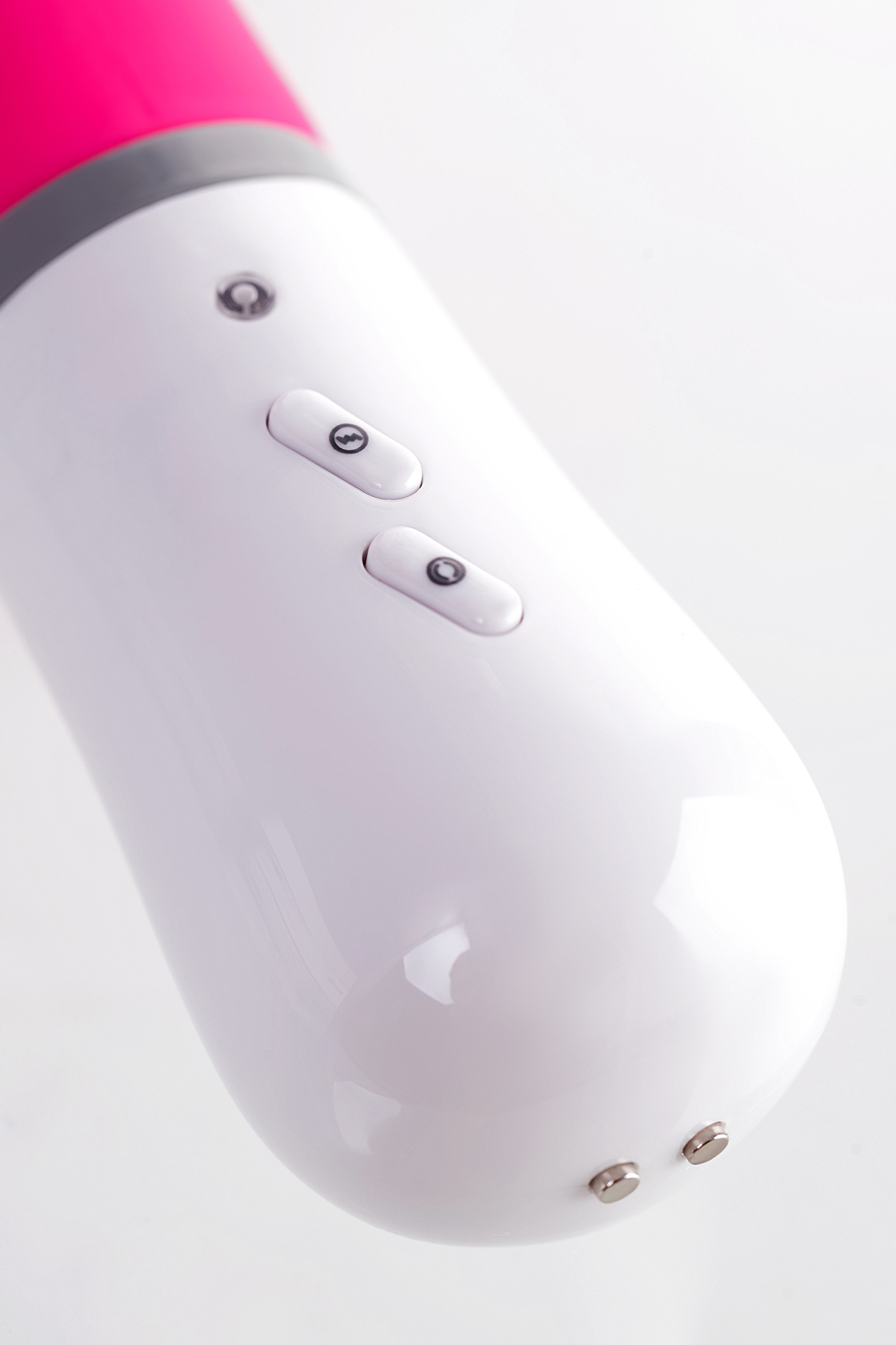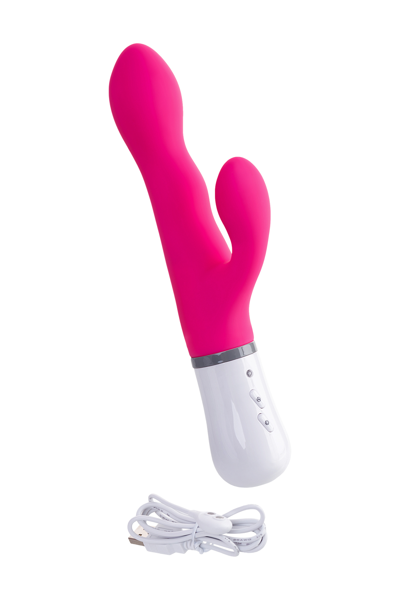 Размеры: длина 20см, диаметр основной части 3.5см, дополнительных элементов - 2.5см. Цвет: ярко-розовый с белым основанием управления.