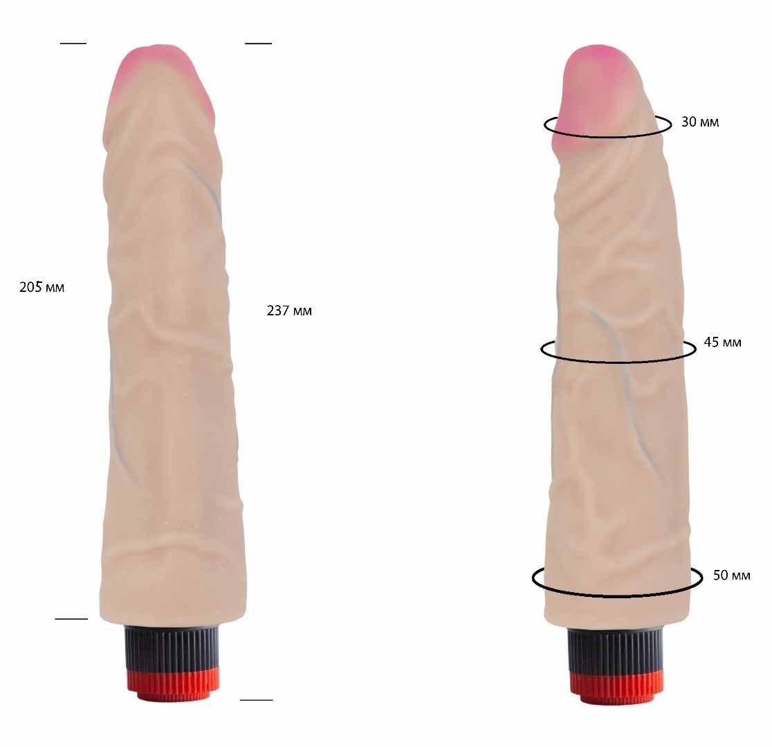 Размеры изделия: длина 23.7 см, рабочая длина 20.5 см, диаметр 5 см. Для более комфортного использования рекомендуется применять со смазкой на водной основе.
