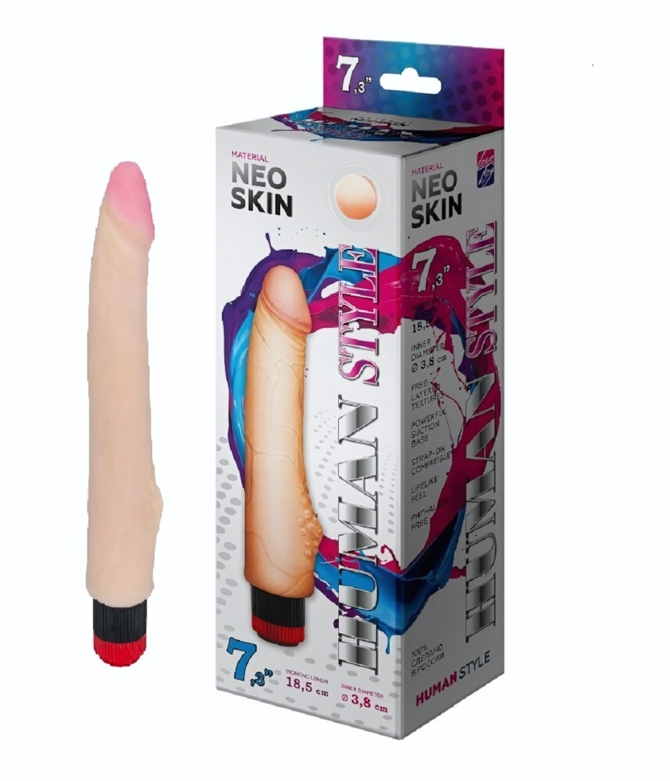 Общая длина изделия составляет 22 см, рабочая часть – 18,5 см, диаметр – 4,6 см. Цвет – естественный телесный с розовым кончиком, что усиливает визуальное сходство с реальной кожей. Внутренняя гелевая масса дарит мягкую «пульсацию», а микромотор с эксцентриком обеспечивает мощные, но тихие вибрационные импульсы.