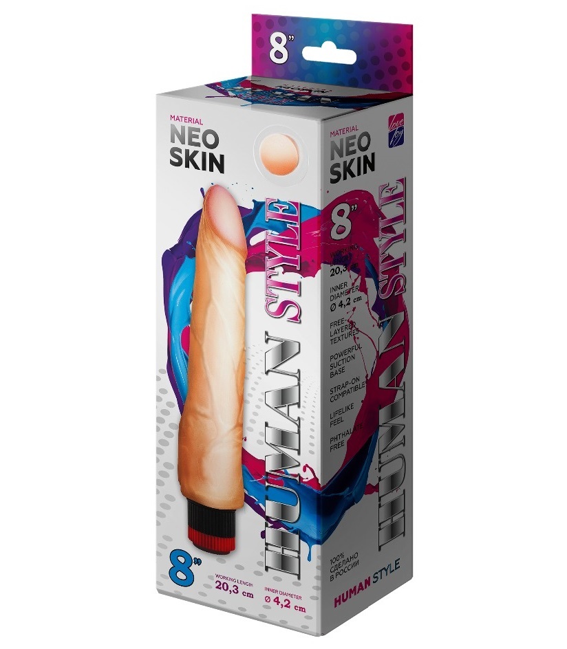 Вибратор реалистичный Human Style, киберкожа, 23 см, диаметр 4.6 см