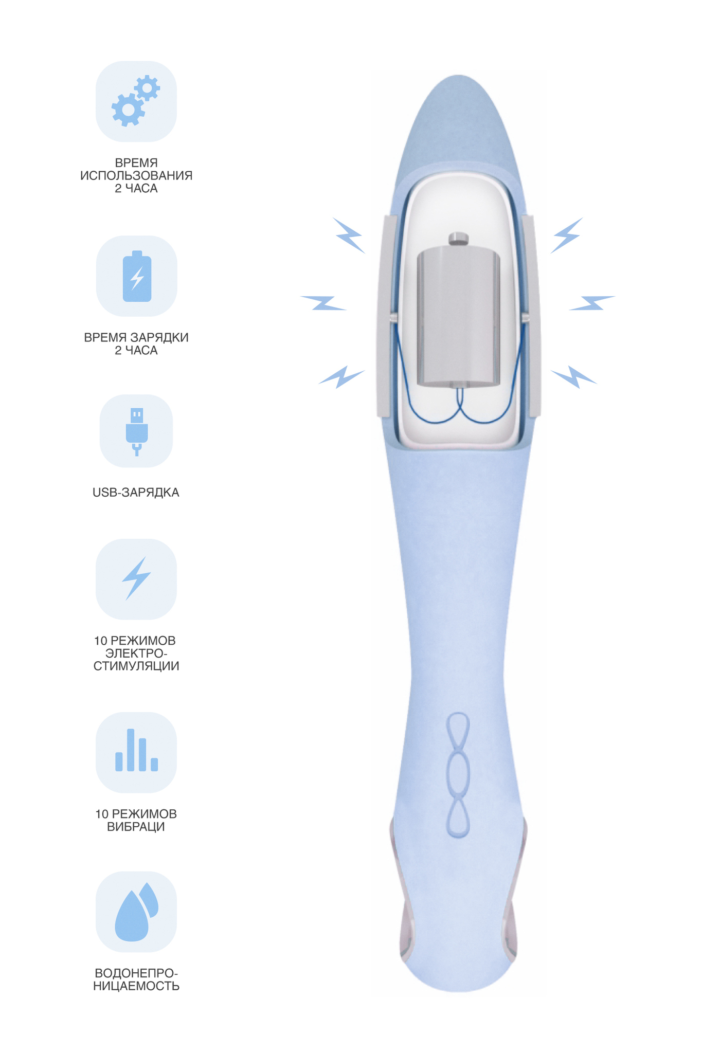 Прекрасно подходит для самостоятельных игр и пар. Компактный, длиной 20,5 см, диаметр от 2,4 до 3,4 см, он легко помещается в руке и легко управляется благодаря простым кнопкам управления. Цвет голубой создает приятное визуальное ощущение спокойствия и гармонии. Этот высокотехнологичный аксессуар поможет вам открыть новые уровни удовольствия, активировать мышцы тазового дна и добиться глубокого оргазма. Сделан из гипоаллергенных материалов — силикона и ABS-пластика, что гарантирует его долговечность и простоту в уходе.