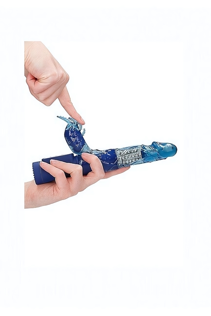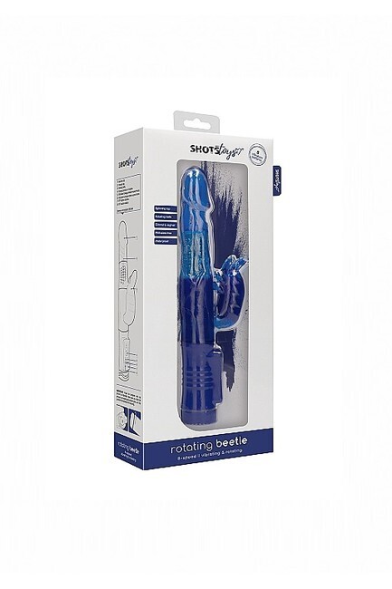 Вибратор с клиторальным стимулятором «Rotating Beetle», синий, TPE, длина 22 см, диаметр 3.5 см