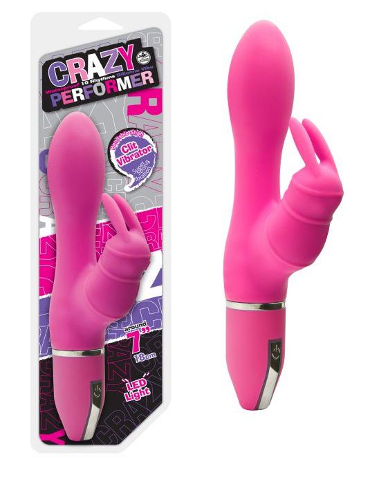 Модель "Crazy Performer" создана для тех, кто ценит разнообразие ощущений и хочет открыть новые грани интимной близости. Этот стильный вибратор сочетает в себе классическую форму для внутренней стимуляции и специальный клиторальный стимулятор в форме зайчика, что позволяет одновременно воздействовать на несколько эрогенных зон.