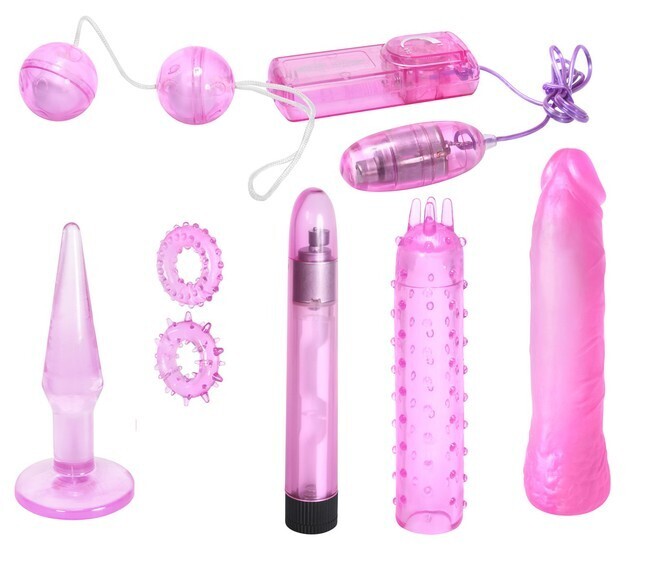 Вибратор, 2 насадки на вибратор, шарики, анальная пробка, виброяйцо, 2 эрекционных кольца