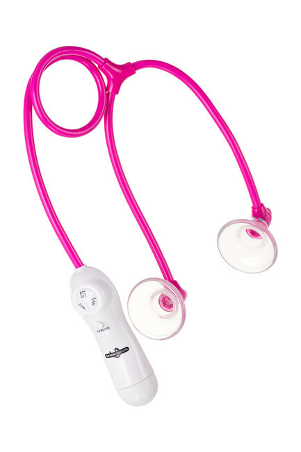 Помпа для сосков «V-twin» с вибрацией, 3 режима, 4 скорости, 2 насадки, диаметр 5,5 см, ПВХ, розовый