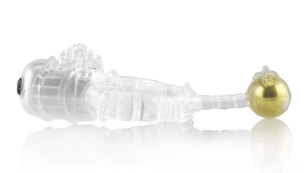 Модель оснащена виброкапсулой с кнопкой управления и гибким стержнем с золотым шариком в мягкой оболочке. Кольцо можно поворачивать разными сторонами, выбирая подходящий тип стимуляции. Такое решение позволяет адаптировать ощущения под индивидуальные предпочтения и делает использование более вариативным.