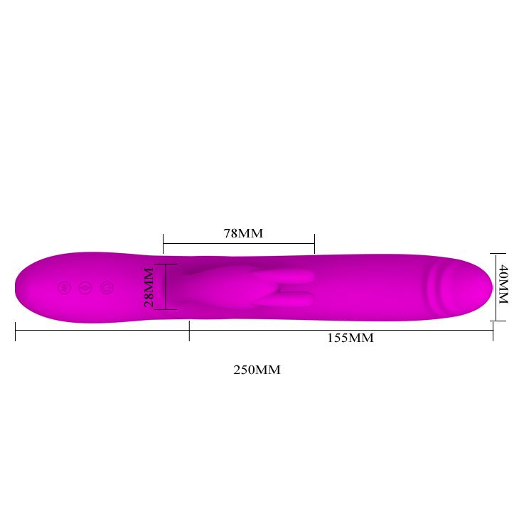 Общая длина составляет 25 см, рабочая длина — 15,5 см, диаметр — 4 см. Материал — силикон, цвет — лиловый. Перезаряжаемый формат избавляет от необходимости менять батарейки и делает использование более удобным.