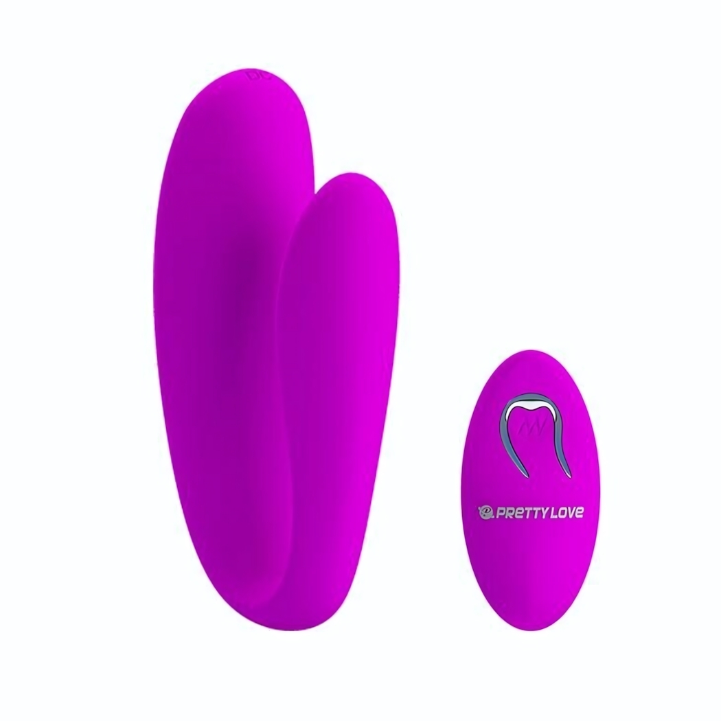 Вибромассажер для пар "Pretty Love" с пультом ДУ, 10 режимов, силикон, лиловый, 10.3 см