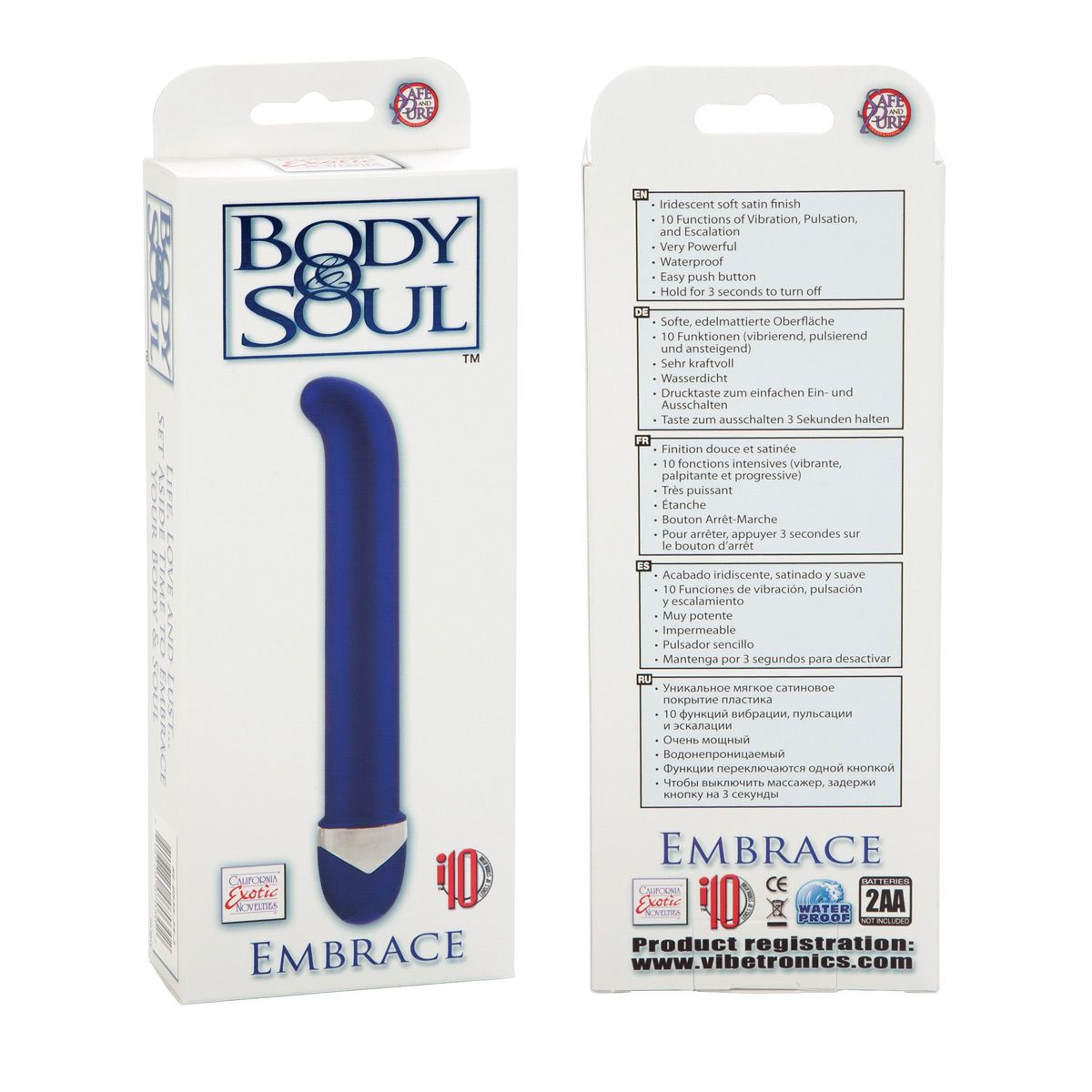 Изогнутый вибростимулятор "Embrace" от Body & Soul создан для целенаправленной стимуляции точки G. Его анатомическая форма и мощные вибрации открывают новые грани чувственности, обеспечивая интенсивные и контролируемые ощущения. Устройство выполнено в элегантном синем цвете с уникальным мягким сатиновым покрытием, которое приятно на ощупь и обеспечивает комфортное скольжение.