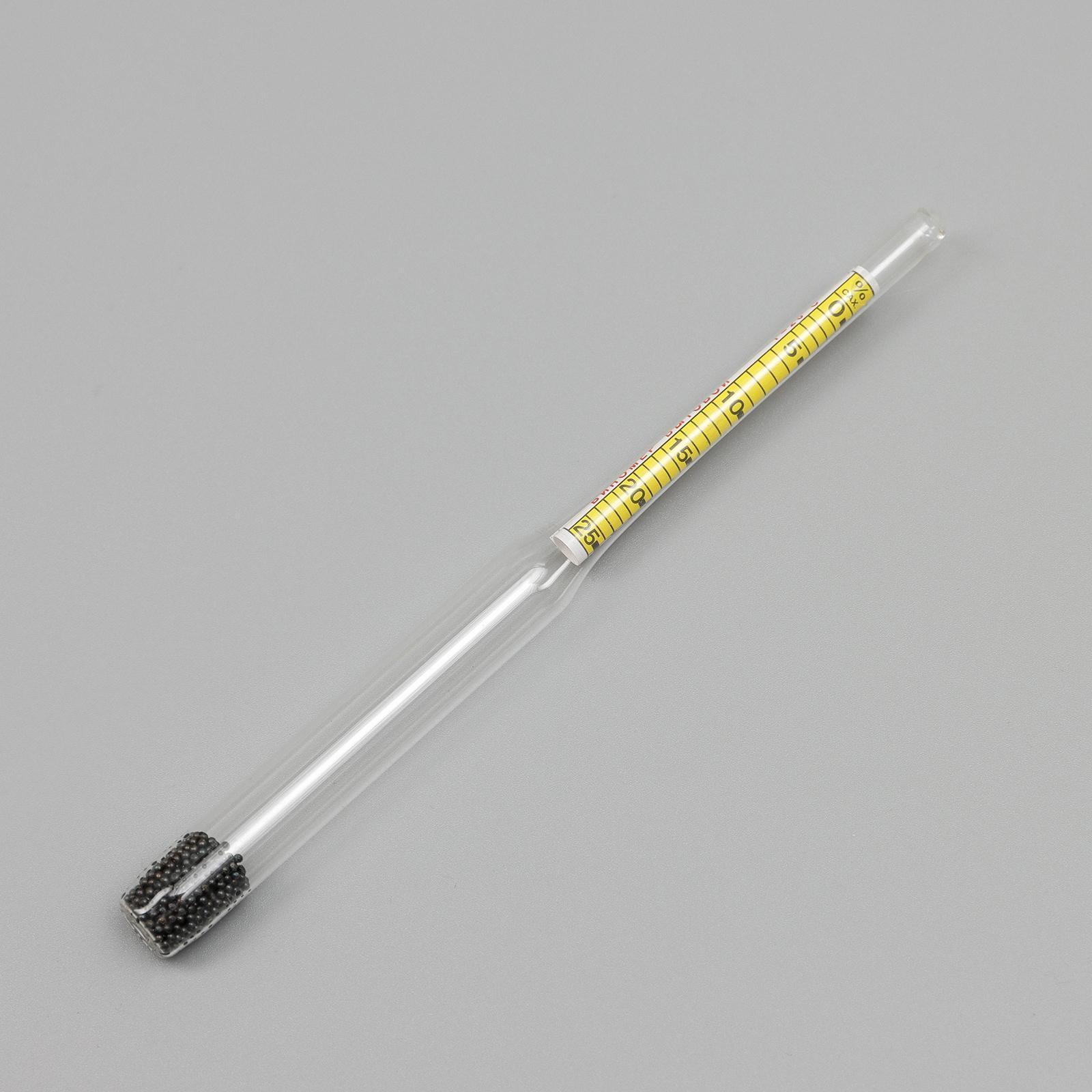 Прибор изготовлен из прочного стекла, обеспечивающего долговечность использования. Двойная шкала позволяет одновременно определять концентрацию сахара (0–25%) и крепость напитка (0–12%). Чем чище исходный продукт, тем точнее результаты измерений.