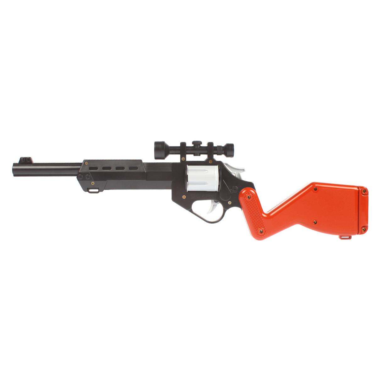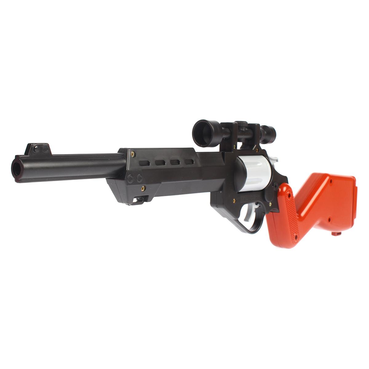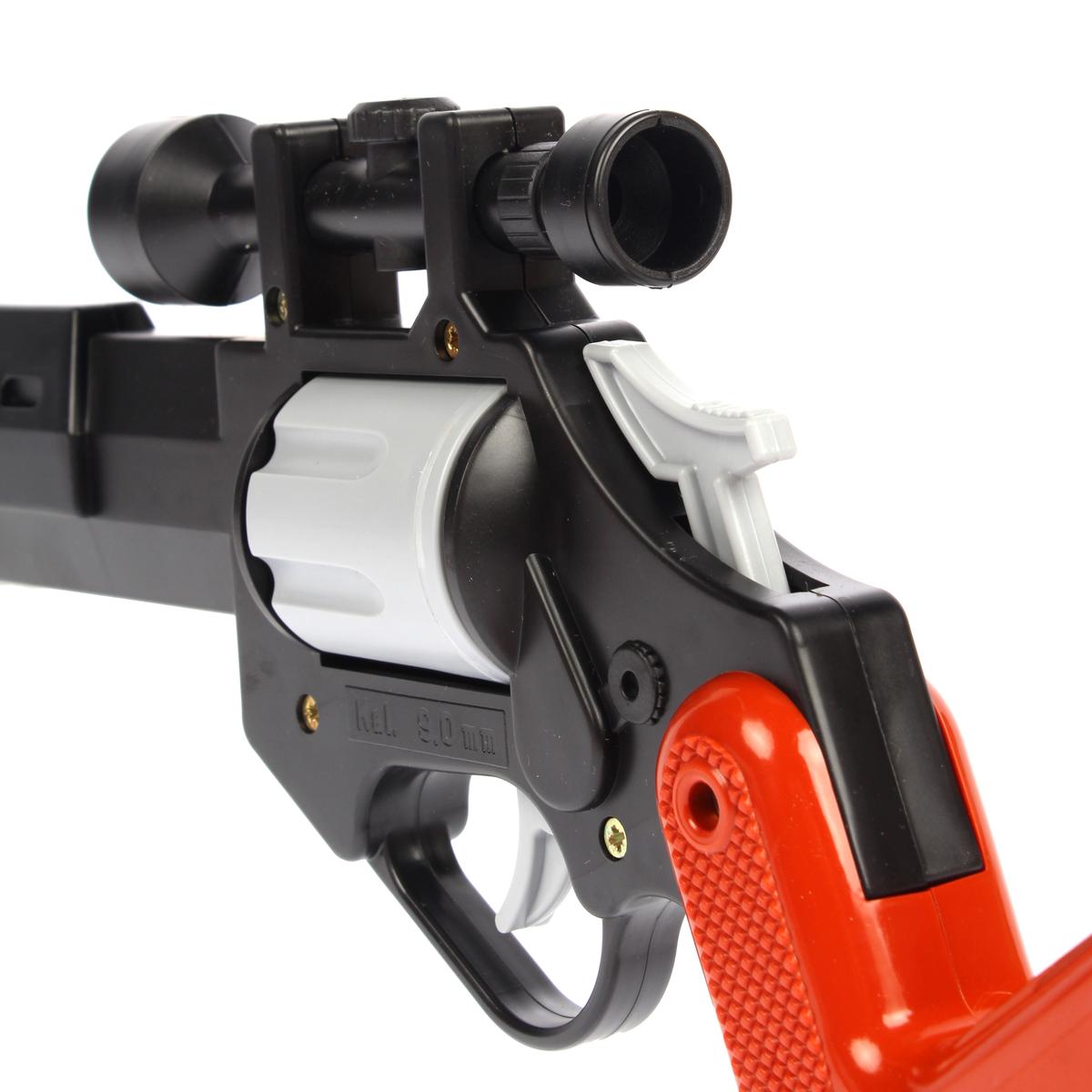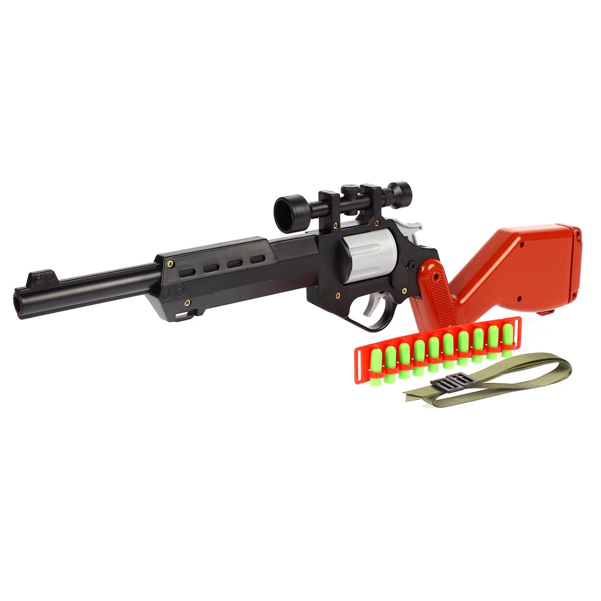 Безопасность превыше всего: винтовка выполнена из прочного пластика, а яркие цвета (черный корпус и красный приклад) исключают возможность принять игрушку за настоящее оружие. В комплект входит удобный ремешок для ношения через плечо и патронташ, что добавляет реализма в игры.