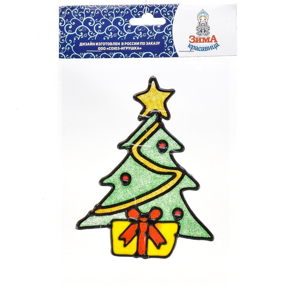 Витражная наклейка 'Елки' 15х20 см, новогодний декор из полимера